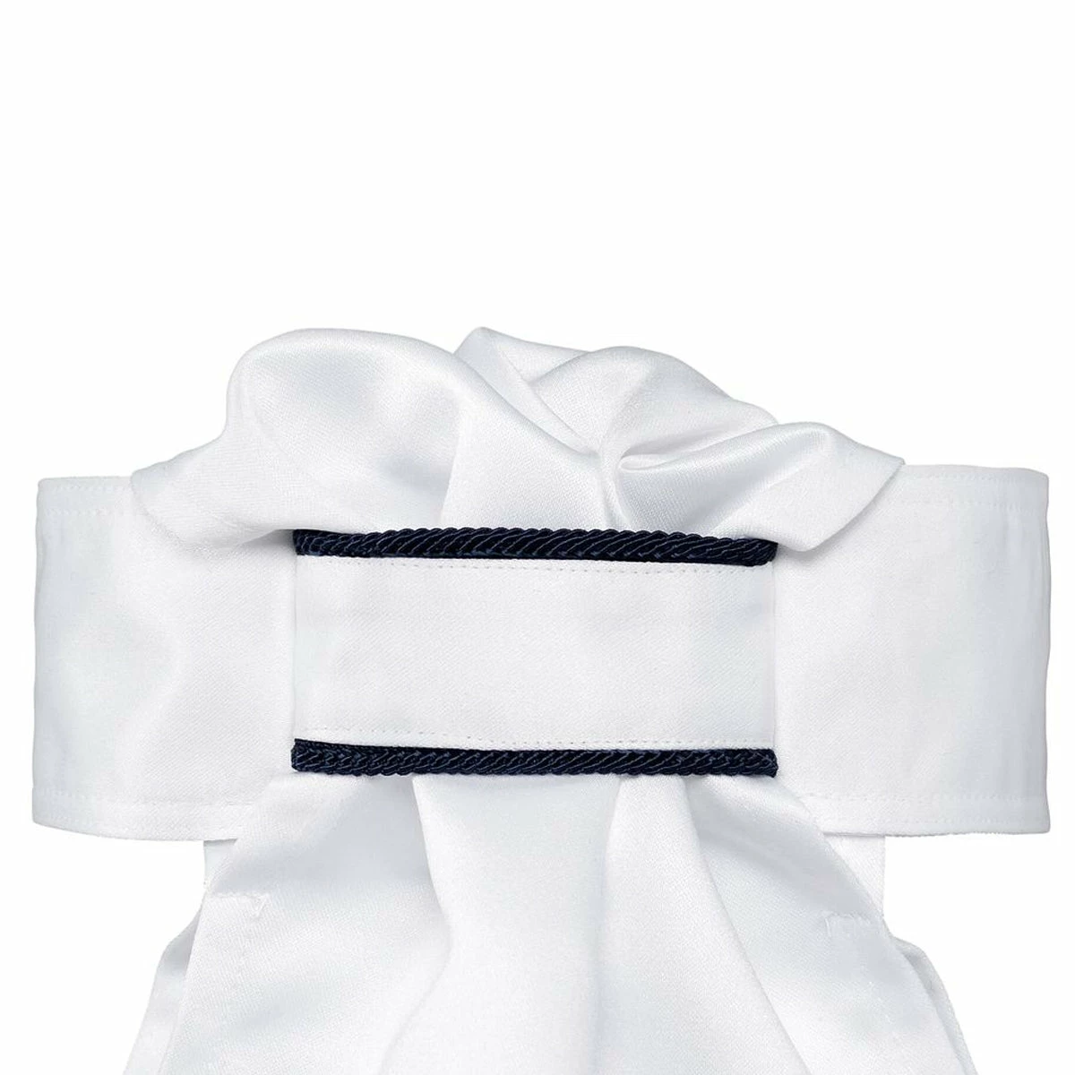 Exquisite, washable fabric is decorated with embellishments that are securely sewn – for that touch of sophisticated sparkle. No additional pinning is required. A sturdy velcro rear closure lets this tie go on easily and stay put while you ride.