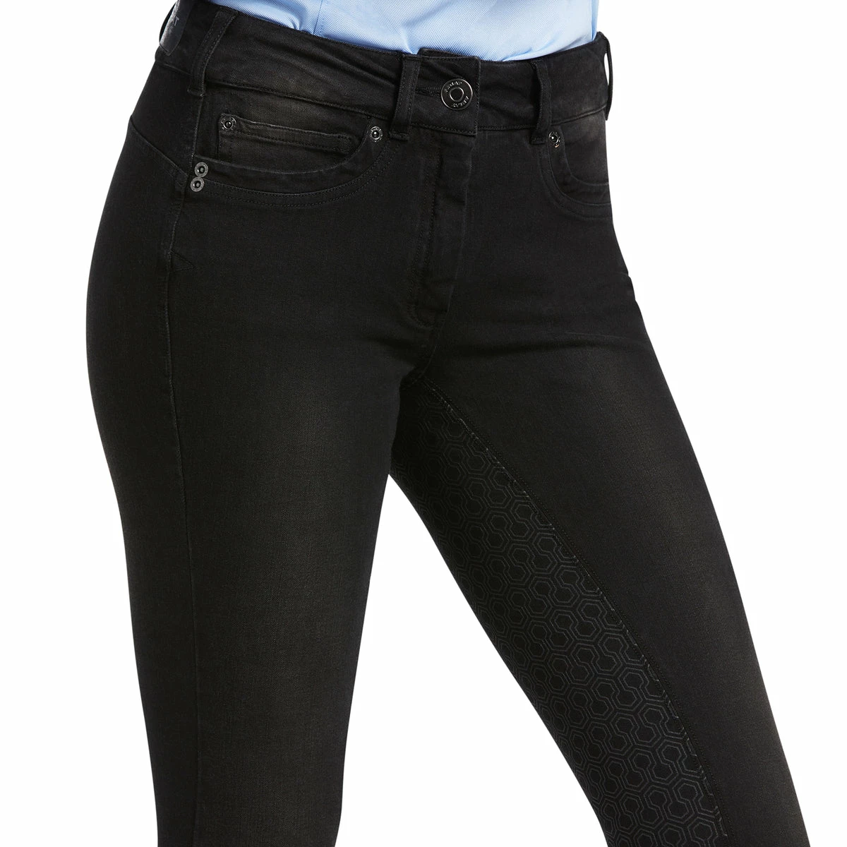 We love theseย Ariat Women’s Halo Denim Full Seat Breeches for the durable denim design, coupled withย Ariatยฎ Hex Silicone Grip full seat technology making these some of the toughest breeches available.ย