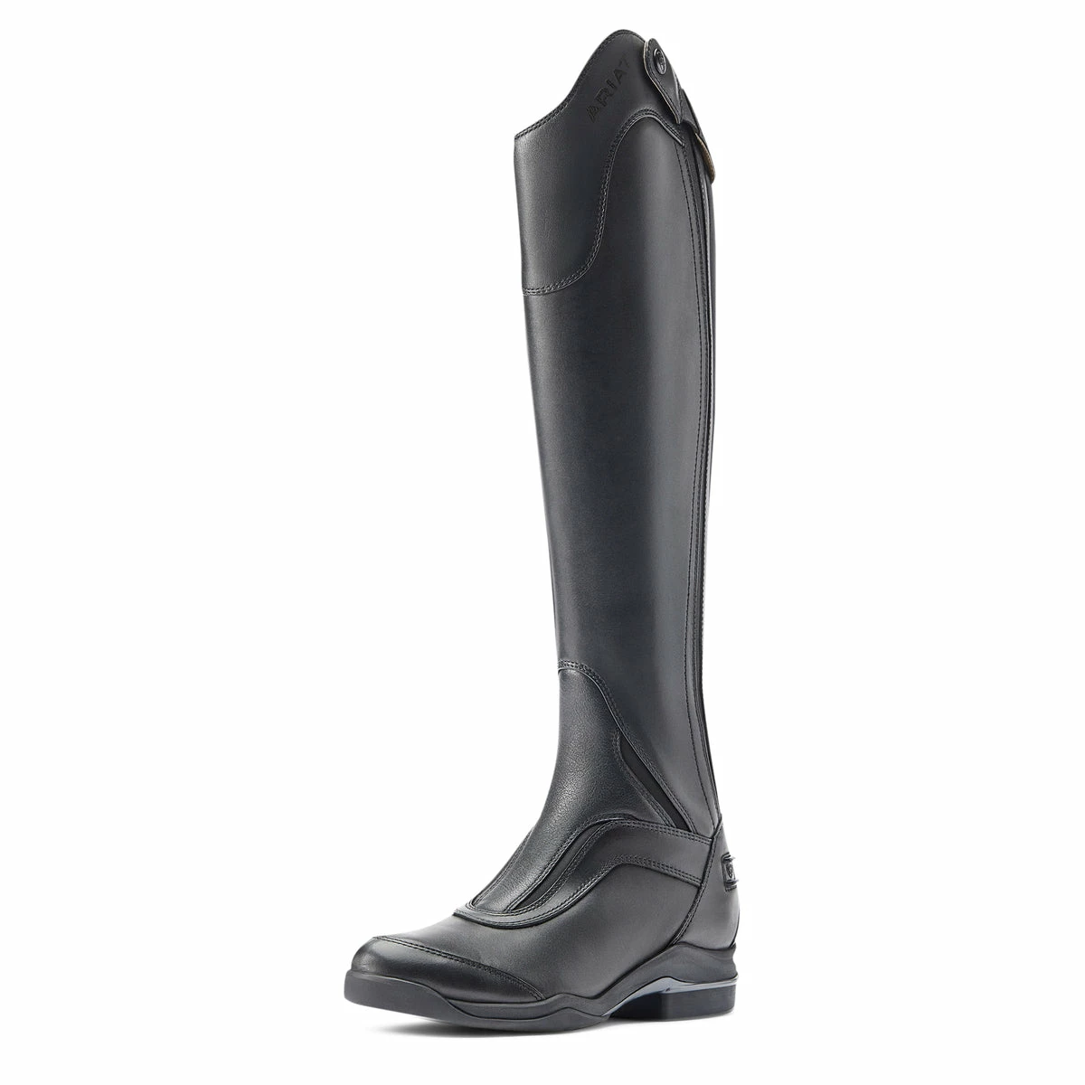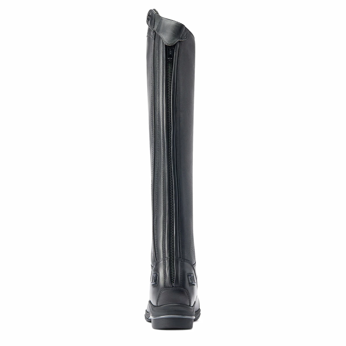 We love this boot because of the full-grain leather coupled with leg lengthening look of the Spanish cut topline.ย