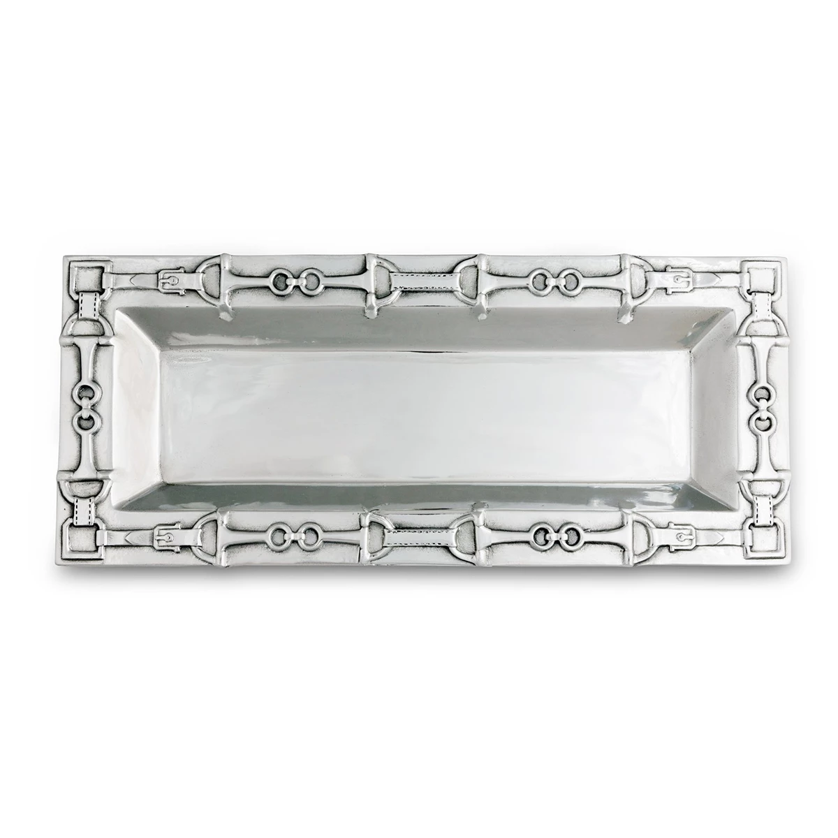We love this oblong tray for the elegant snaffle bits around the edge that bring life to your table!