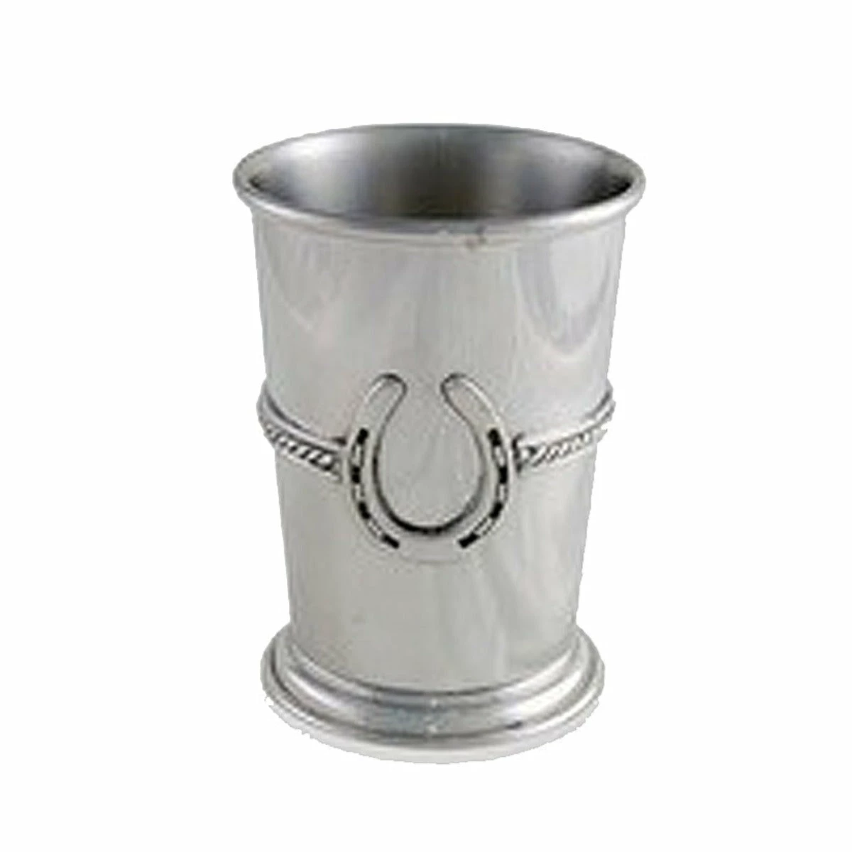 A ropy band wraps around the middle of this piece before settling against both sides of a realistic horseshoe. The cup’s sturdy, pure-pewter design keeps your drink properly chilled within its distinguished form.