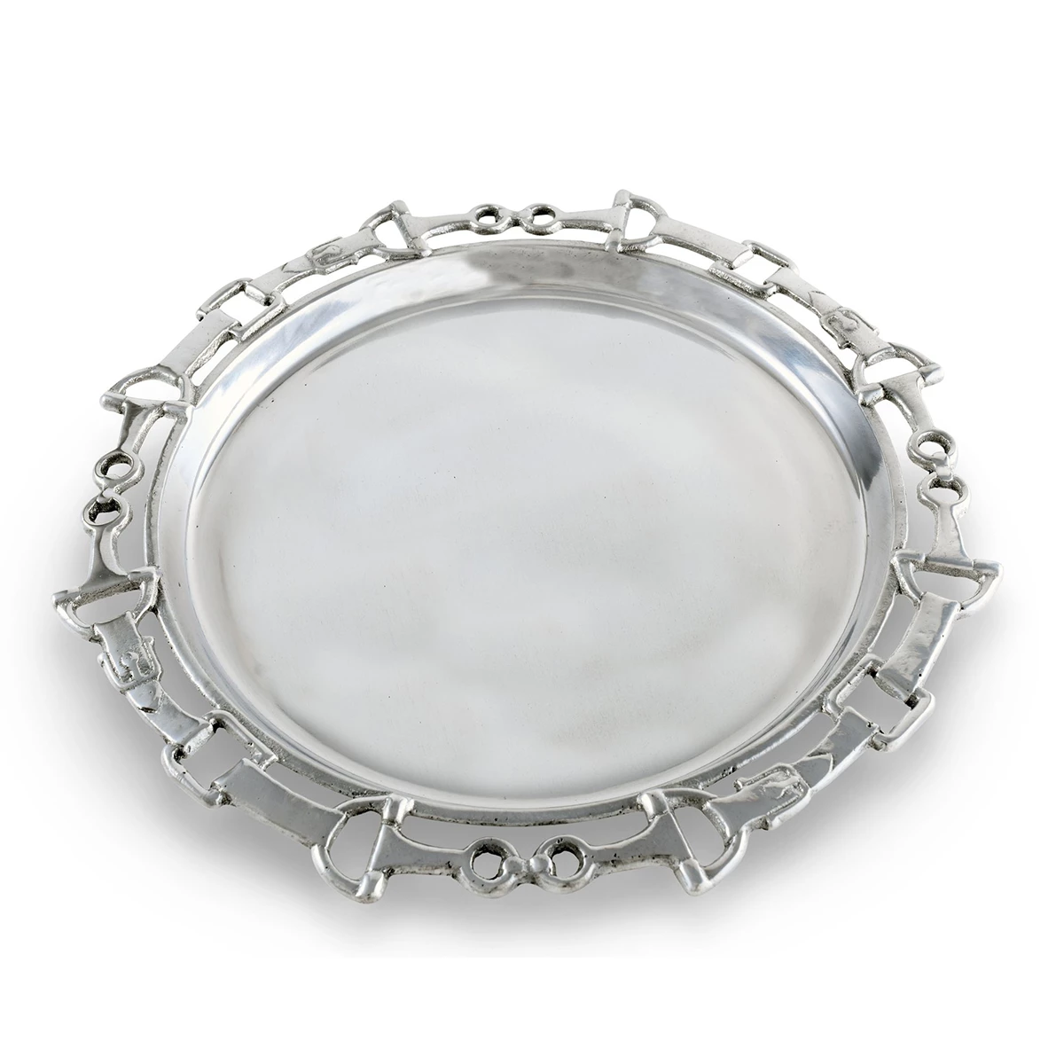 Incorporate riding instruments into the serve ware with Arthur Court’s 12″ Equestrian Round Tray.