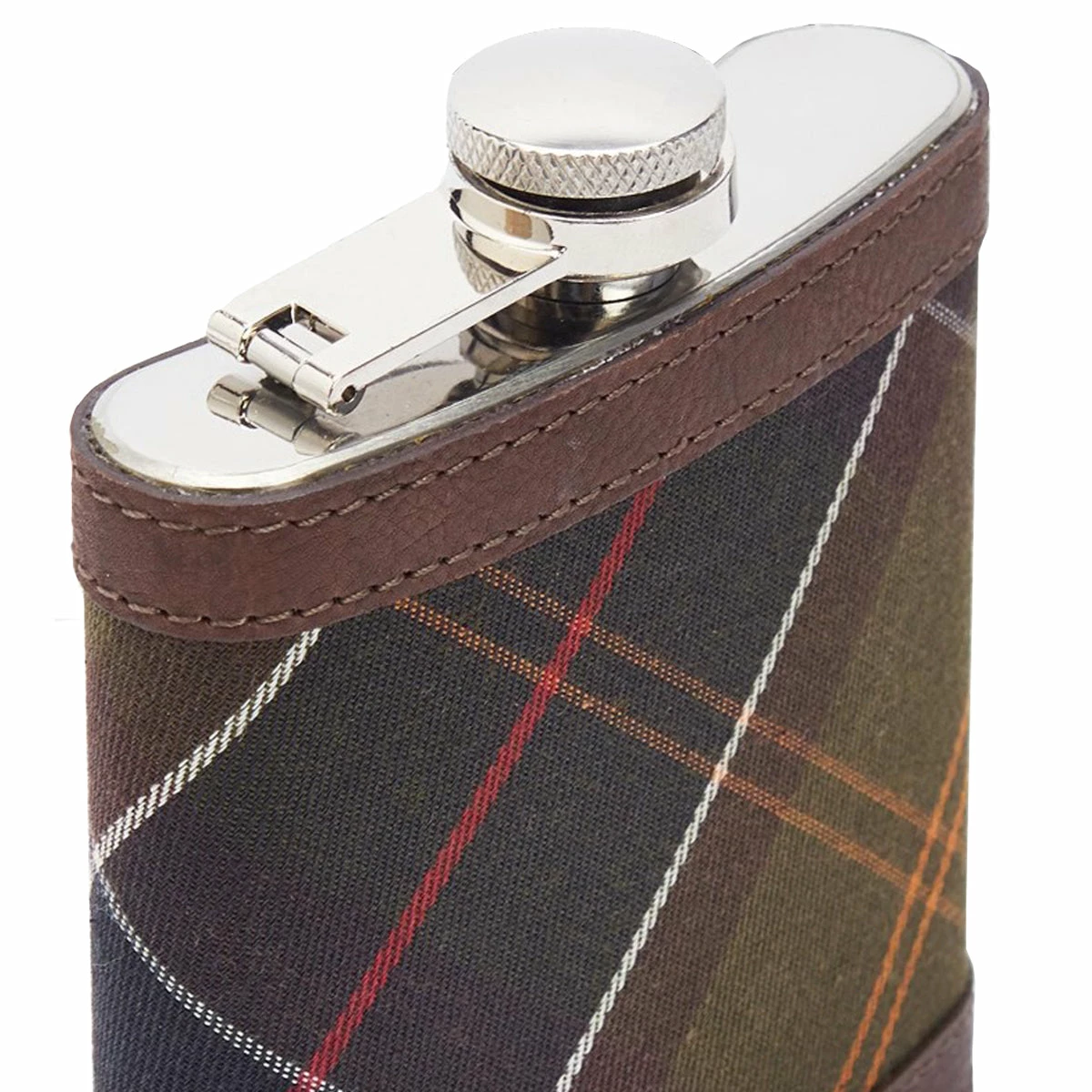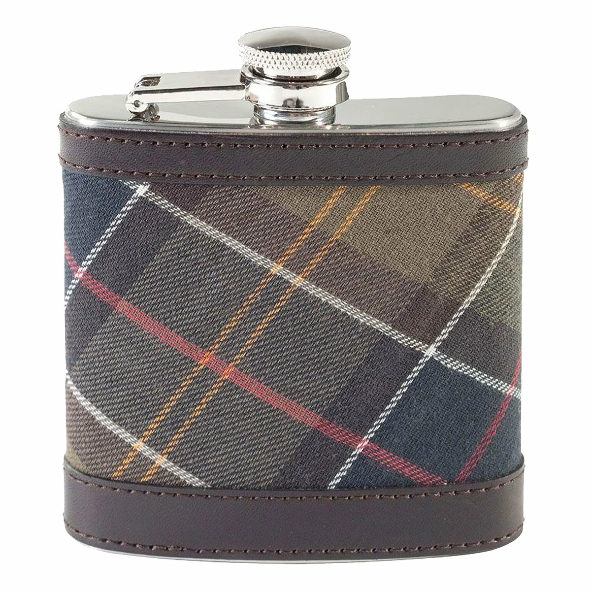 - 6oz stainless steel, cotton Barbour Tartan cover with leather trims