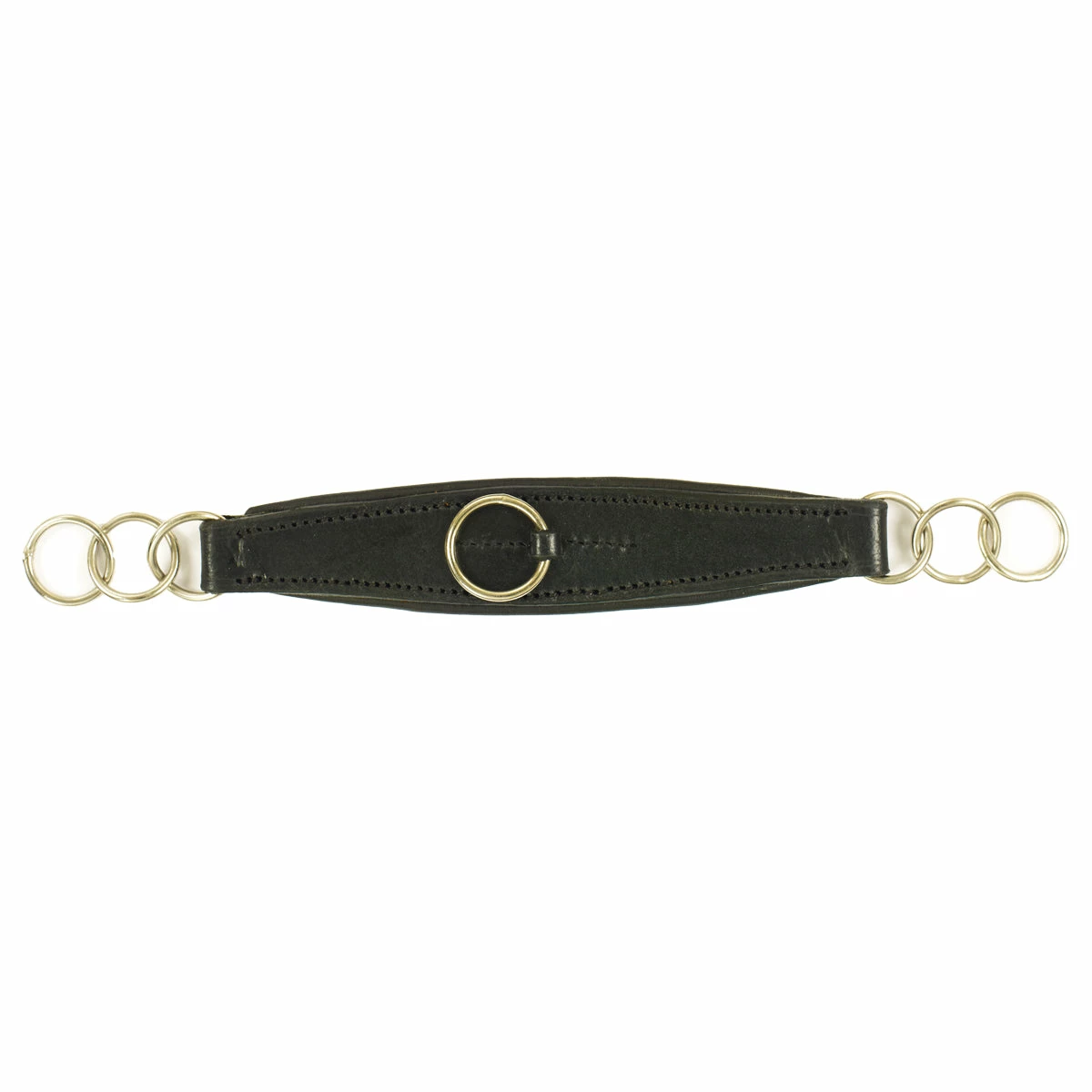 Imported padded leather curb strap with chain ends and center ring. The wider center offers more comfortable pressure distribution.