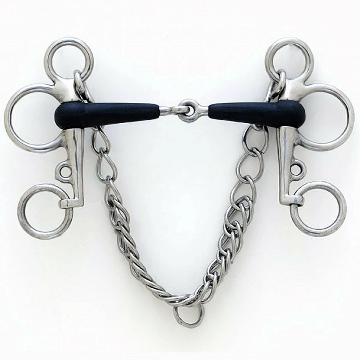 We love this Centaur® Eco Pure Tom Thumb Pelham Joint Bit because it combines the action of a snaffle bit with a curb bit. The perfect bit if you have a horse that leans on the bit or is hard to stop. This bit requires an expert hand. Â