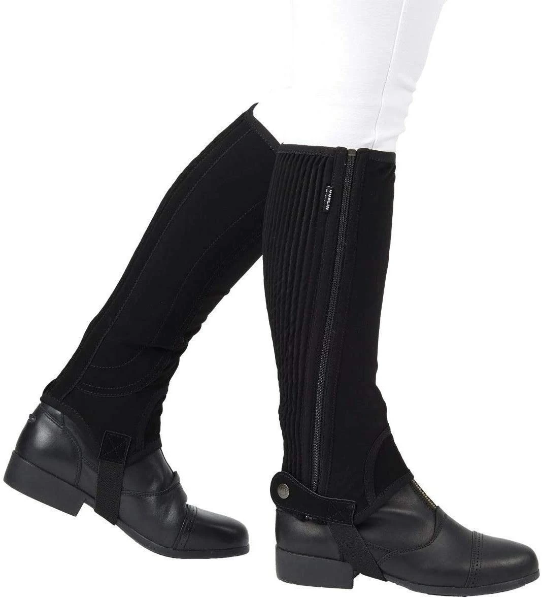 An improved design lets this Dublinยฎ Childrenโs Easy-Care II Half Chap perform even better than the original. This kidsโ half chap is made of washable, durable synthetic suede with a durable YKKยฎ zipper that closes from the top down. Elasticized calf for a great fit, heavy-duty elastic foot strap and branded press stud on the zipper keeper. A comfortable, attractively-priced half chap. Available in brown.