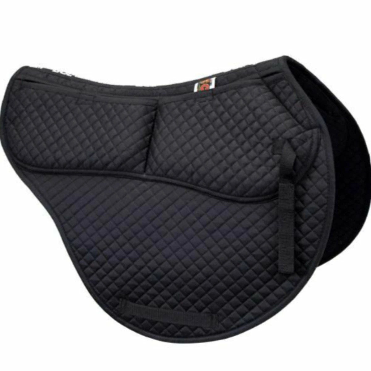 For shows & eventing or every day, all-purpose riding, consider our new contoured pad for a tighter, closer ride.ย Theย contoured shape of the pad allows for a more streamlined look without bulky fabric, and makes it less likely to interfere with sporty, competitive riding.