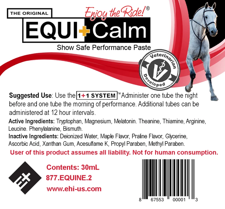 EQUI+Calm Pasteย is a show-safe performance paste that effectively calms horses, alleviates stress, enhances performance, all while focusing on gastric support.ย