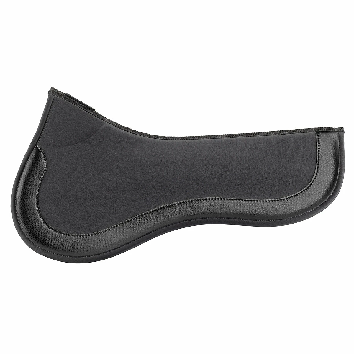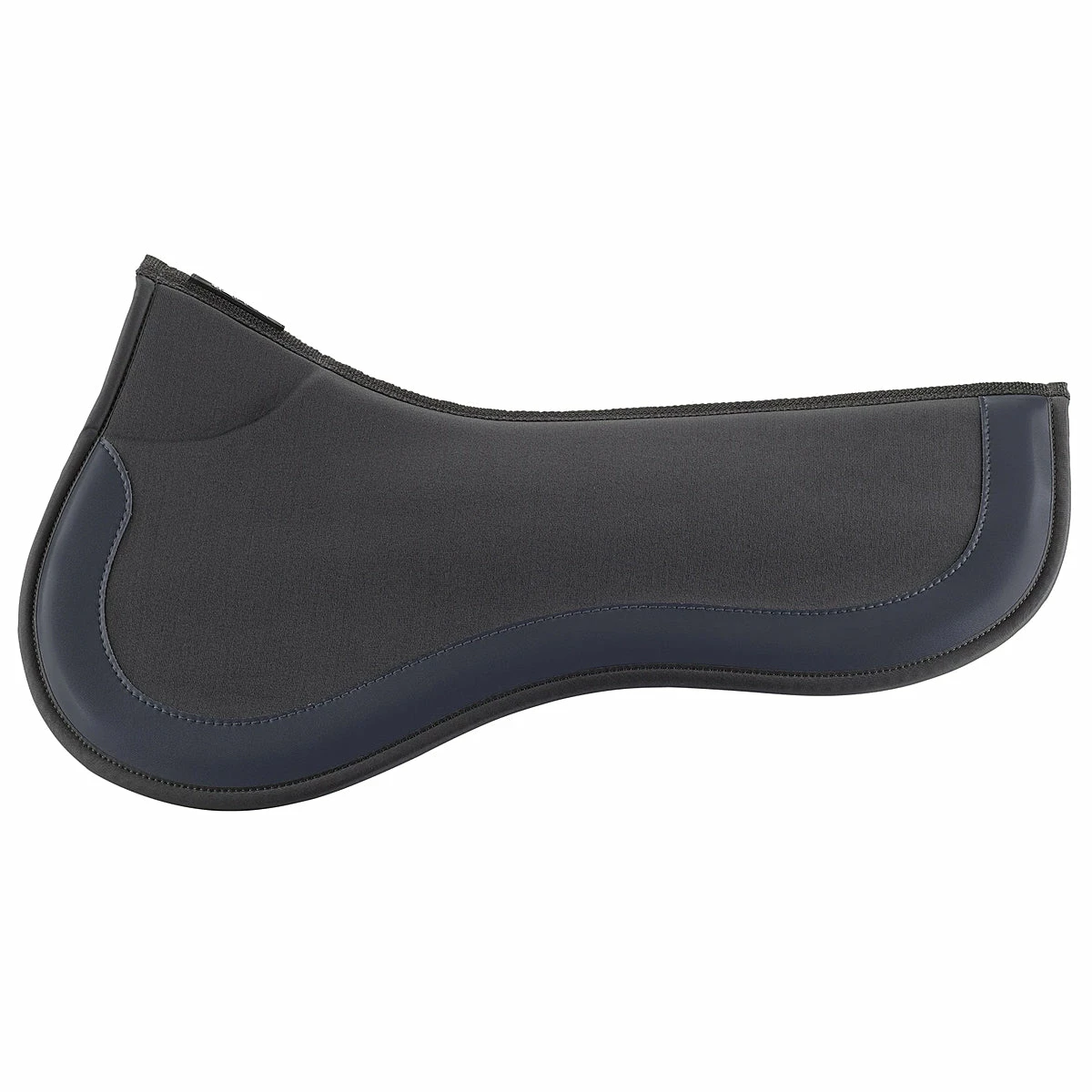 Offering a custom fit with every ride. ImpacTeq Half Pads offer the most excellent level of comfort and protection of any saddle pad on the market thanks to their ImpacTeq foam construction.ย Theย foam core molds to the body for a secure, supportive fit.ย An open-cell non-newtonian foam transforms from soft to rigid upon impact, absorbing extreme concussion and providing greater comfort for the horse and rider. A contoured shape puts less pressure on the withers and spine. Multi-dimensional air mesh promotes airflow and circulation. Non-slip panels underneath keep the pad in place and ensure minimal movement. Antimicrobial fabric is breathable and easy to clean.ย