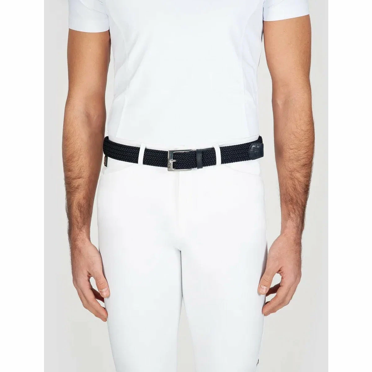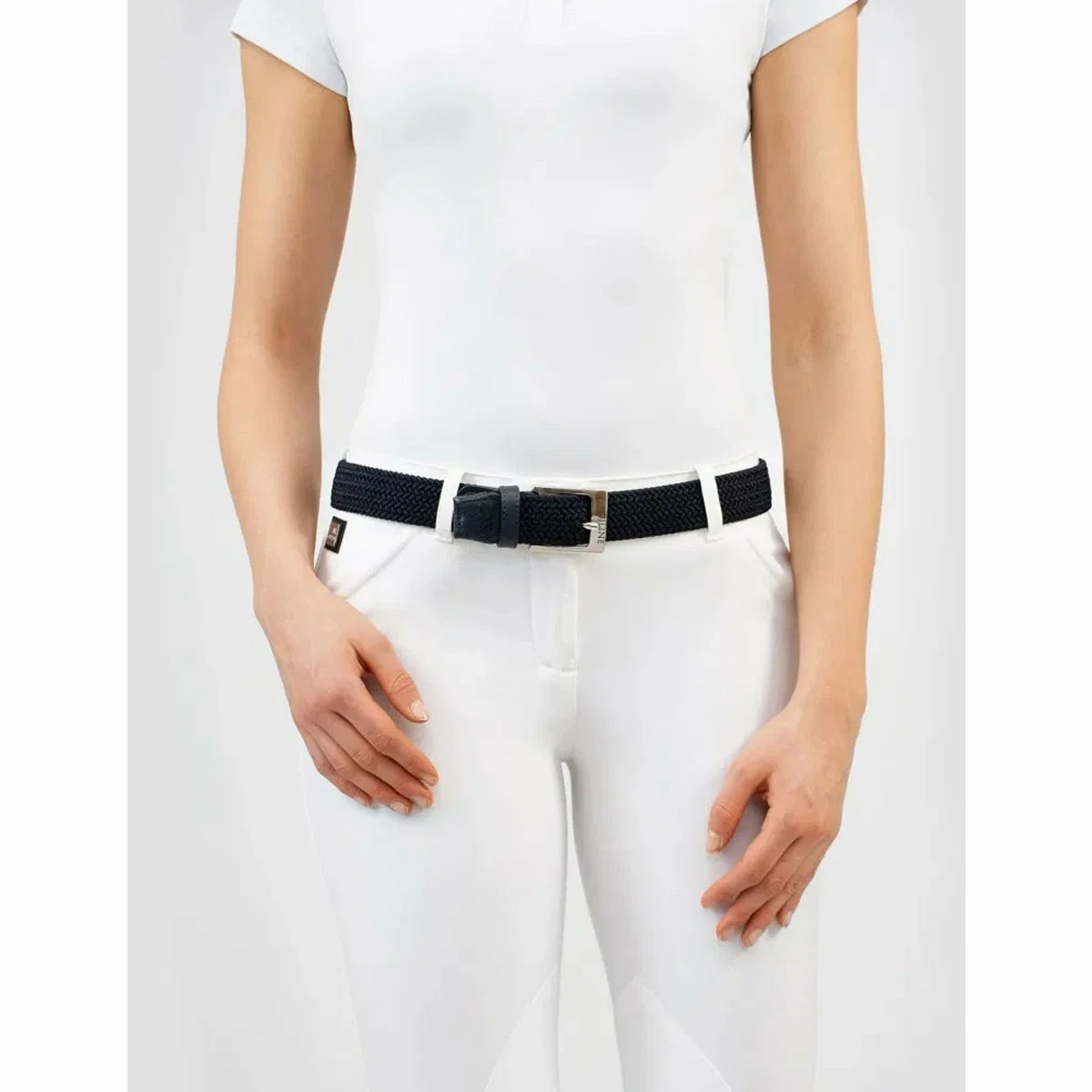 We love the Equiline ONE Braided Classic Belt because it is the “go with anything” belt.ย You can dress it up or down for a great look either way.ย Stretch and close belt through any section for a comfortable snug fit. Simple and versatile styling to wear with breeches, jeans, or khakis. The ONE belt features a zinc-plated metal buckle with the Equiline logo and leather ends.