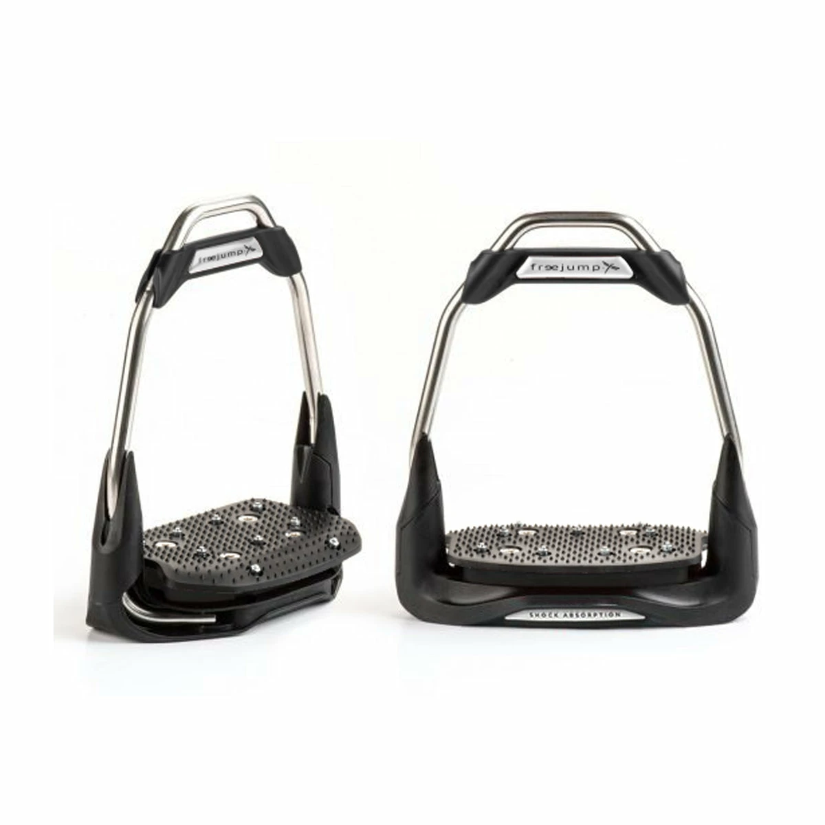 The AirโS stirrups offers a traditional architecture (stainless steel frame) with technical characteristics for more comfort, better balance and optimized grip. The technical options of the AirโS stirrups can be chosen: eye orientation (30ยฐ oriented or straight) and inclination of the florr (flat or 10ยฐ inclined). The AirโS stirrups are also customizable for a unique look (AirโS Custom stirrups): the colors of the stickers, the top banner, the floor and the elastomer can be chosen from a range of colors and flags.