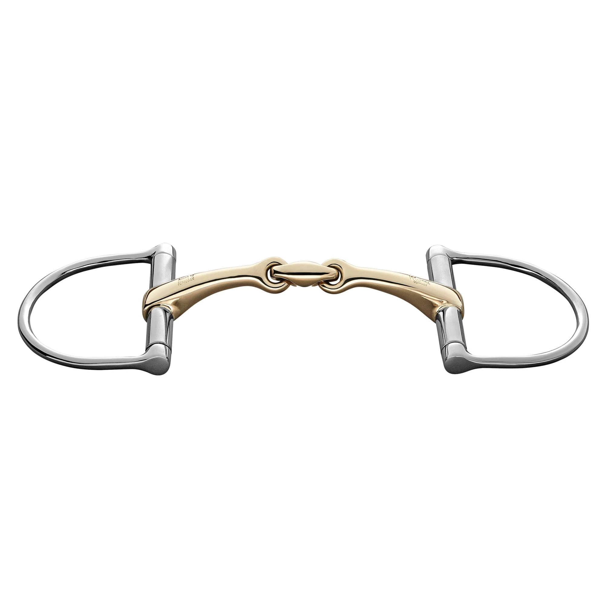 We love this double-jointed D snaffle from Herm Sprenger for the classic design. Horses love the soft feel of the double-jointed style.