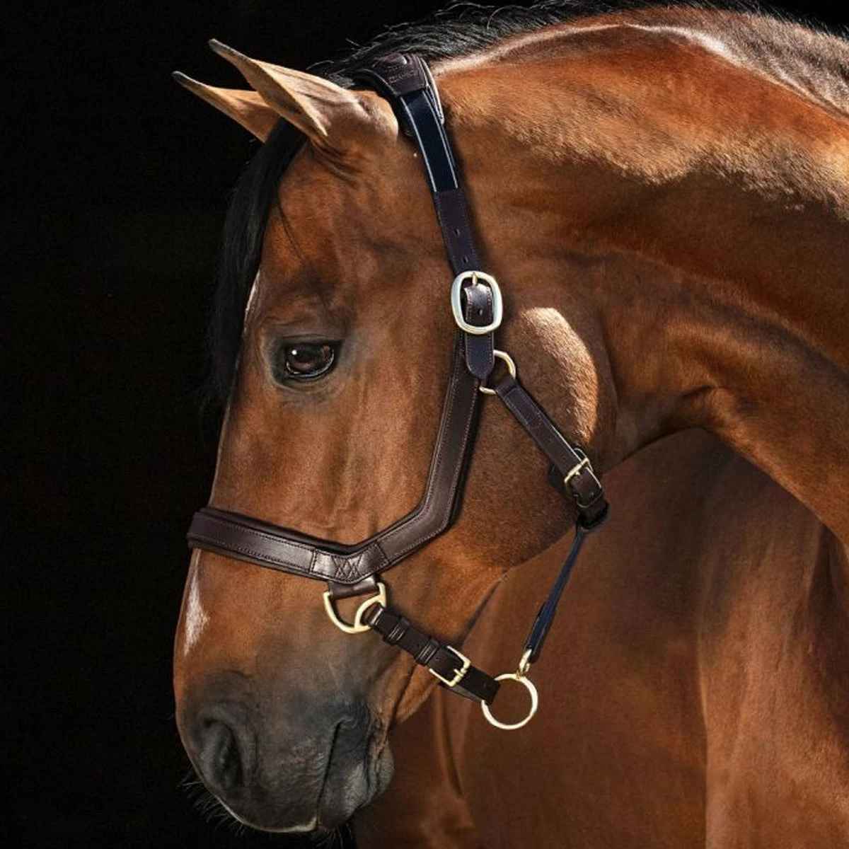 This halter has been developed using the innovative and best-selling Micklem Bridle design for the horseโs ultimate comfort during handling and travelling. It includes elasticated sections in the headpiece to allow safer tying of your horse as well as easier training of the horse to not pull back. The Micklem shape allows the halter to avoid sensitive areas of the head, while the luxurious leather gives that beautiful show finish. It is adjustable on both sides of the headpiece as well as under the chin. Available in Black or Brown leather.