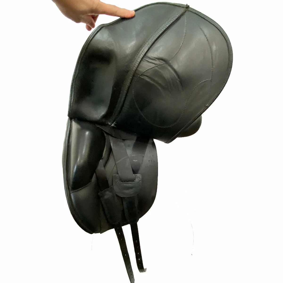This type of dressage saddle has a deep seat, and the low point of the seat is more in the back.