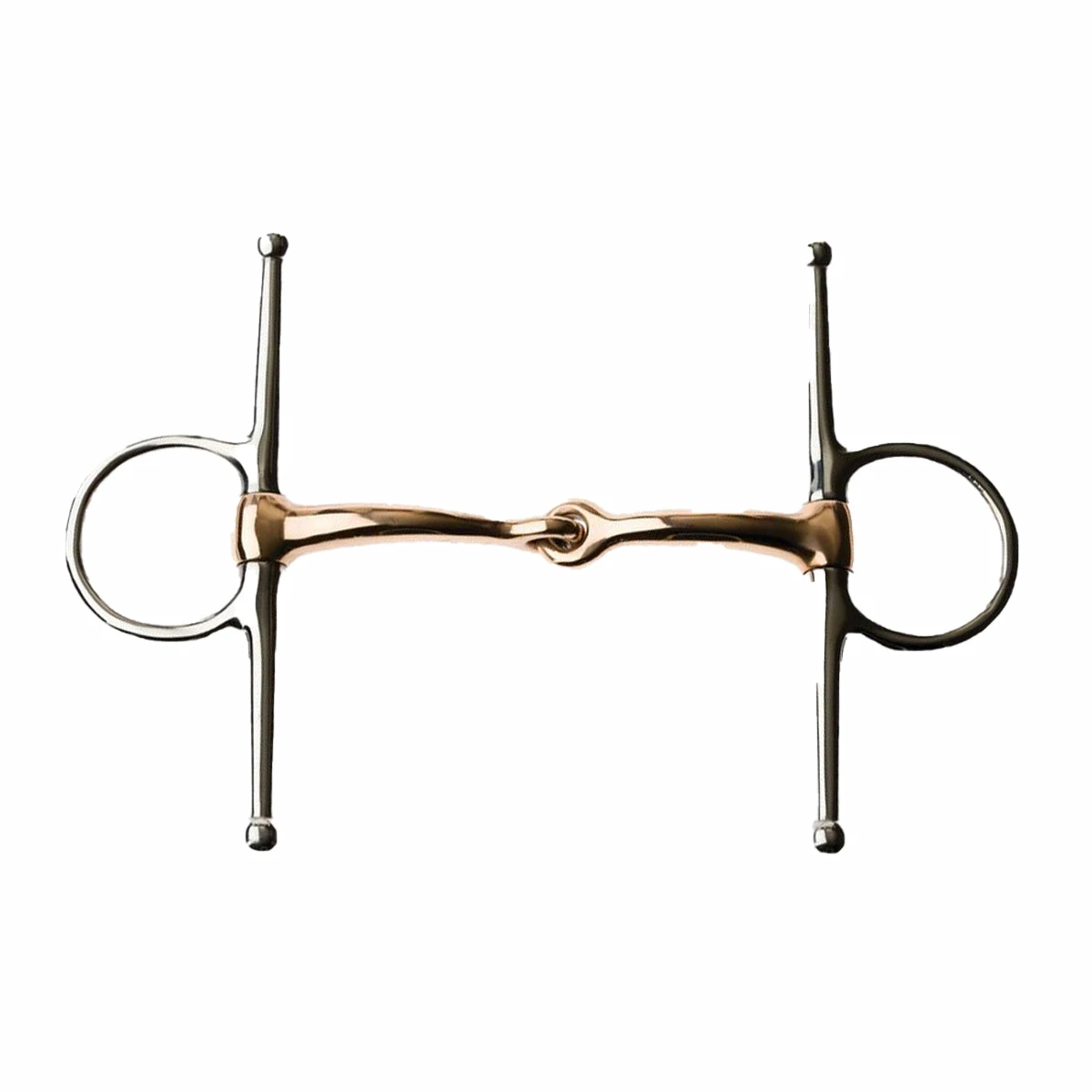 We love the JP Korsteel Copper Mouth Full Cheek Snaffle Bit because the copper mouth promotes salvation to relax the jaw and the full cheek provides lateral pressure to aid turning.ย The curved mouthpiece eliminates the nutcracker action of pinching the tongue and hitting the roof of the mouth.ย ย