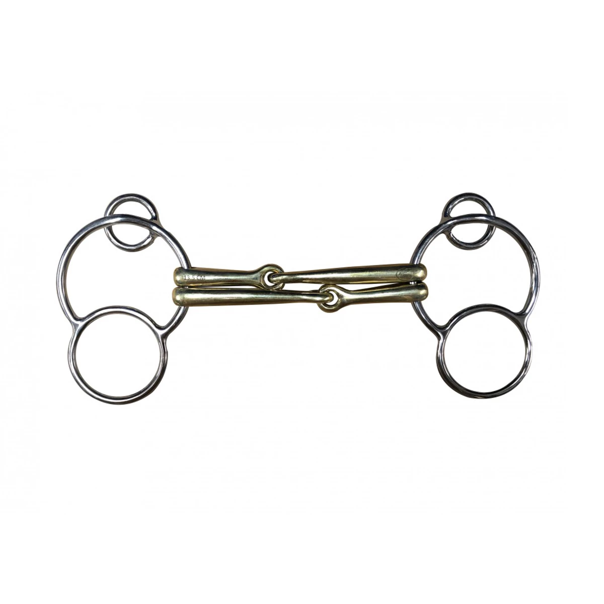Featuring a 14mm mouthpiece and made of German Silver. The German 3-Ring is unique as the leverage is slightly softer than a traditional 3-Ring bit. The two mouthpieces are asymmetrically positioned to prevent the horse from leaning on one side or the other.