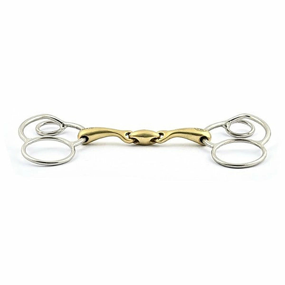 The German 3 ring bit is particular as it prevents pinching around the usual friction areas. The lever action is progressive and slightly softer than the lever action of a classic 3 ring bit. This bit does have a gag action andย can be used with reins attached on the bottom ring, with bit loops or with two pairs of reins.