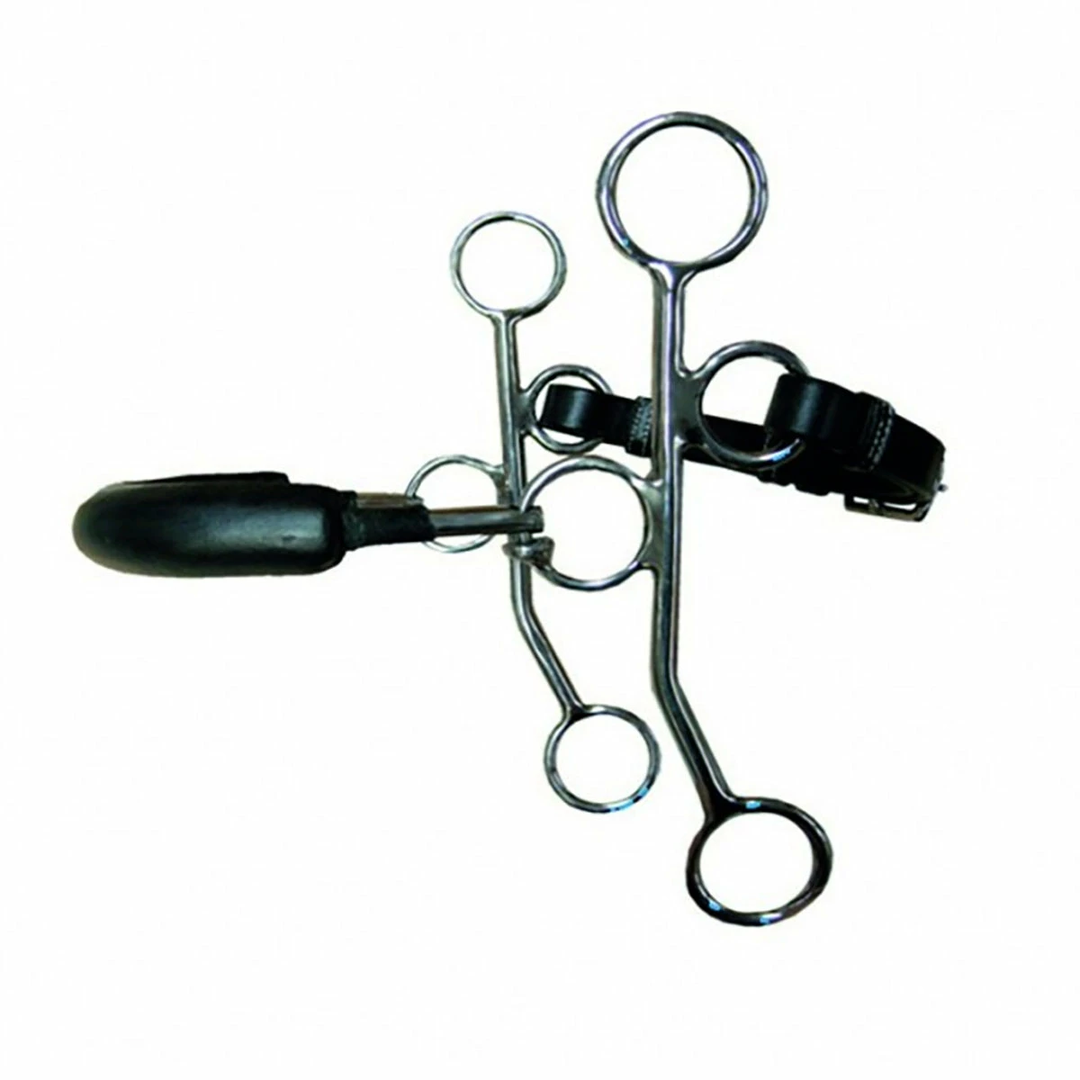 Hackamore with aย rubber coatedย noseband, stainless steel cheeks and leather curb chain. The Hackamore has a lever action on the bridge of the nose and the mandibles only. It will not have any action on the inside of the mouth. It it greatย for horses that don’t tolerateย bit contact in their mouth, for those that fight the rider’s hand or for those that can’t be ridden with a mouthpiece.