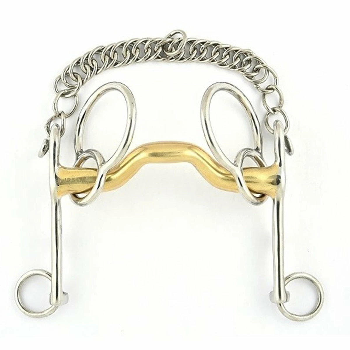 The Swales bit has similarities with the Pelham bit, but the first one puts no pressure on the horse’s neck as there is no action on the cheek pieces. It is the only bit that has a lever action with no pressure on the neck. This bit directly acts on the curb chain so on the horse’s mandibles but not on the head and neck posture. It minimizes the possibilityย for the horse to stoop.