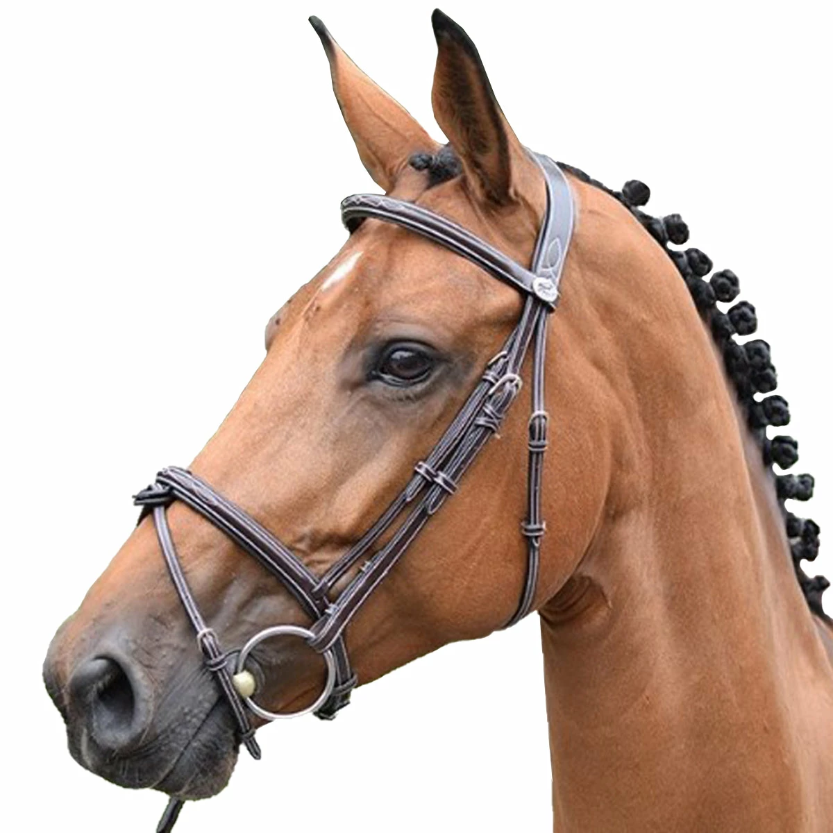 Theย Thursdayย Bridle is a greatย classicย and a must. It can be usedย at the stablesย every day and on competition days. The bridle in entirely white stitched and comes in a flash or figure 8 noseband. Both theย noseband and brow band have fancy white stitching patterns. Theย anatomic headpieceย is slightly larger to give greaterย comfortย to the horse. The buckles areย stainless steelย and theย reinsย are made ofย flexibleย rubber.
