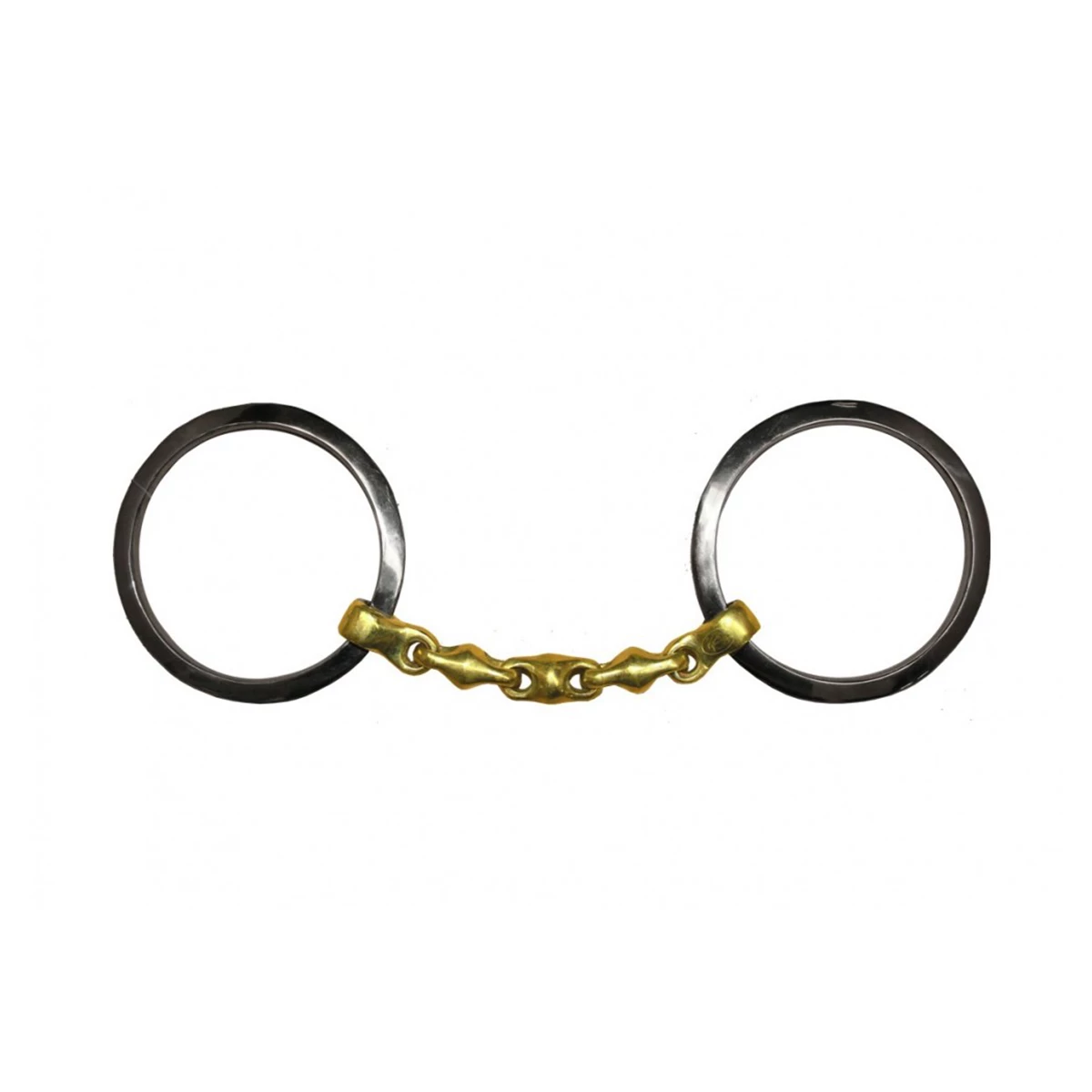 Featuring 90mm rings, a 17 mm mouthpiece, and composed of a German Silver Alloy, this bit is unique in the fact that breaks up the pressure points on the horse. Helps keep horses light in the mouth.