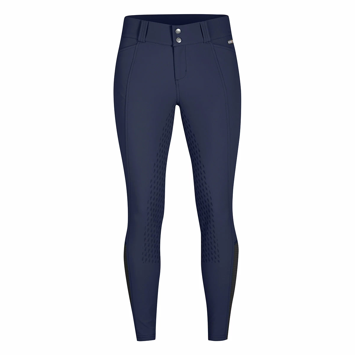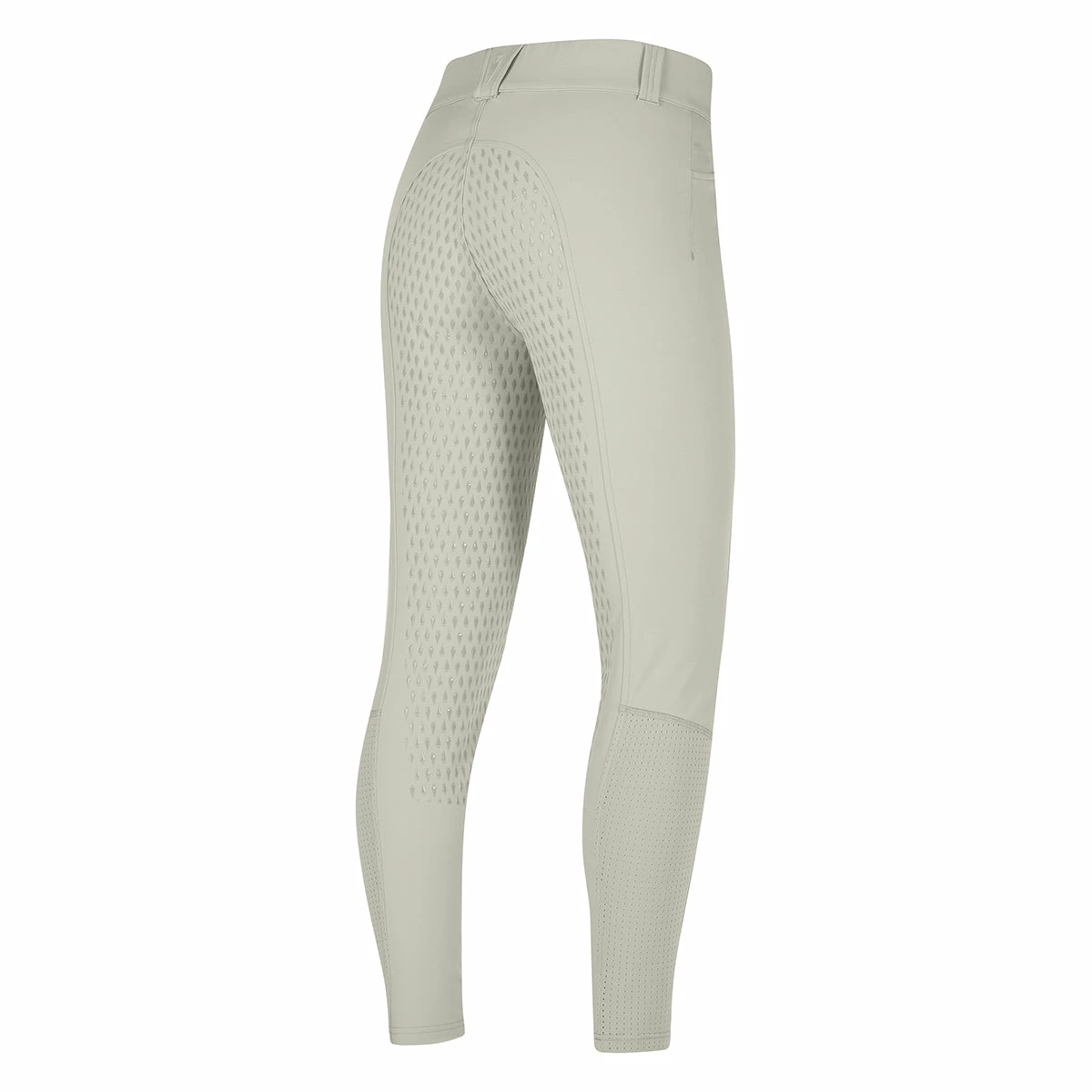 This breech has a tailored front fly with two-snap closure, along with a locking zipper head that keeps the zipper secure and in place to help prevent wardrobe malfunctions. With a 2โ comfort waistband and belt loops, two front zip pockets. Euro seat styling and Kerrits Sticksโขย siliconeย full seat patches for maximum grip and flexibility. Ice Filยฎย mesh panel at the calf stretch and vent for cooling comfort post-ride.