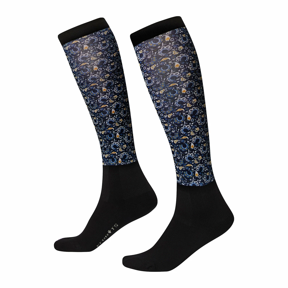 We love these cozy Dual Zone Boot Socks to keep your toes warm in your tall boots.ย Perfect weight for warmth yet, thin enough to fit niceย & smoothly into your boots.ย The fun designs are also perfect for wearing with paddock boots or clogs.ย Show off your style in these fun fabric socks.ย ย