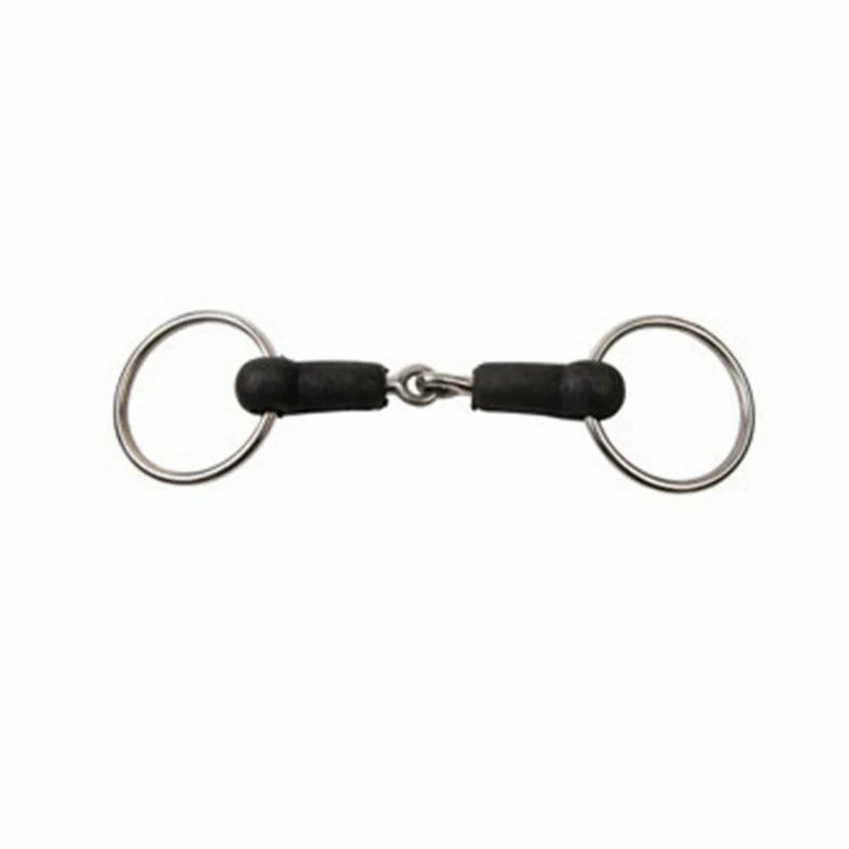 We love the Korsteel Hard Rubber Jointed Loose Ring Snaffle Bit because the hard rubber mouth is a different tasting alternative to stainless steel, which encourages the horse to accept the bit.ย ย