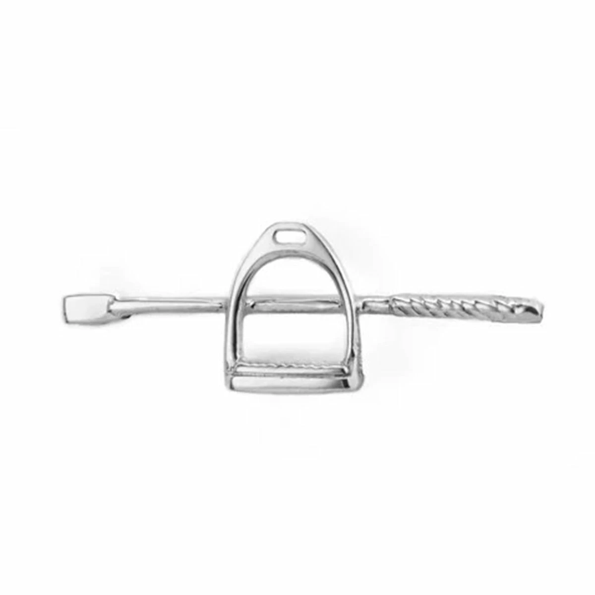 Our most popular stock Tie Pin for your Hunter/Jumper horse show attire. This detailed equestrian English stirrup and crop stock pin is beautiful in its clean lines and simplicity. It features two of the most iconic equestrian symbols. Strong, sharp and secure.
