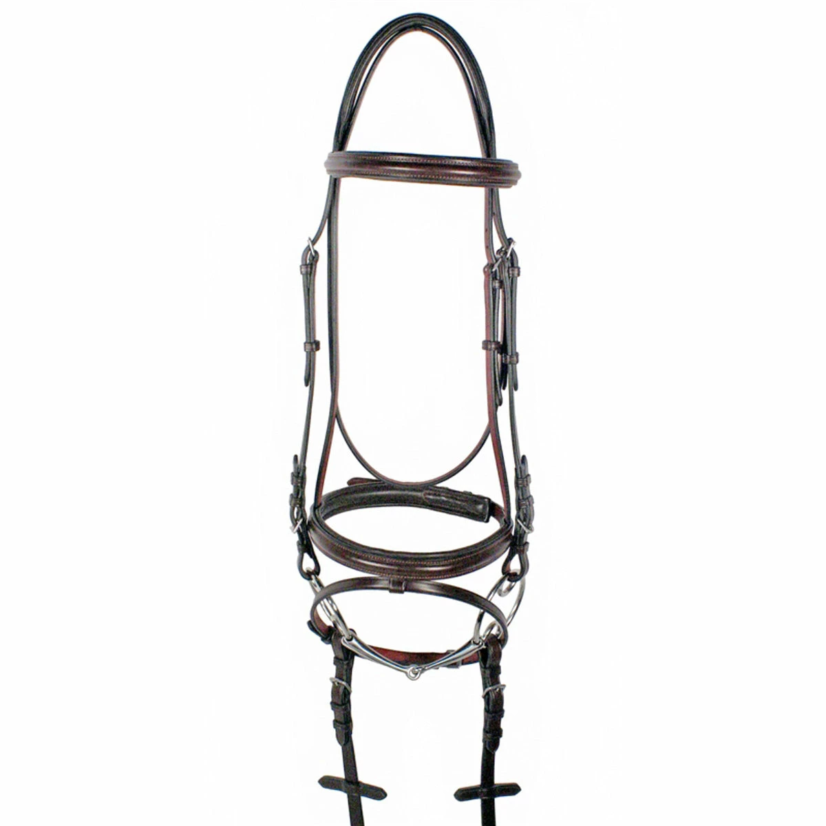 The Galway Bridle with flash will be your favorite bridle right away! The craftsmanship and quality of the leather are matched by the attention to detail as are all Nunn Finer® products. The Galway features American tanned leather with zinc fitting, buckle ends, and a soft padded crown, brow and cavesson. Rubber reins are included to make this a complete bridle.