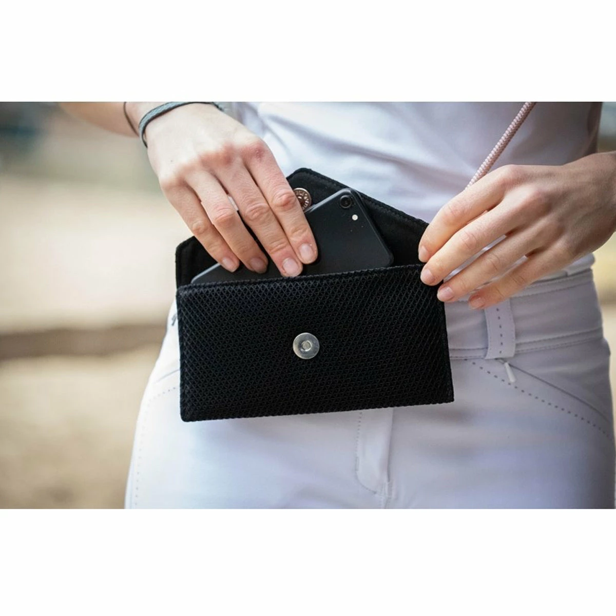 We love this mesh phone pocket because it holds phones of all sizes and comes with an adjustable shoulder strap.
