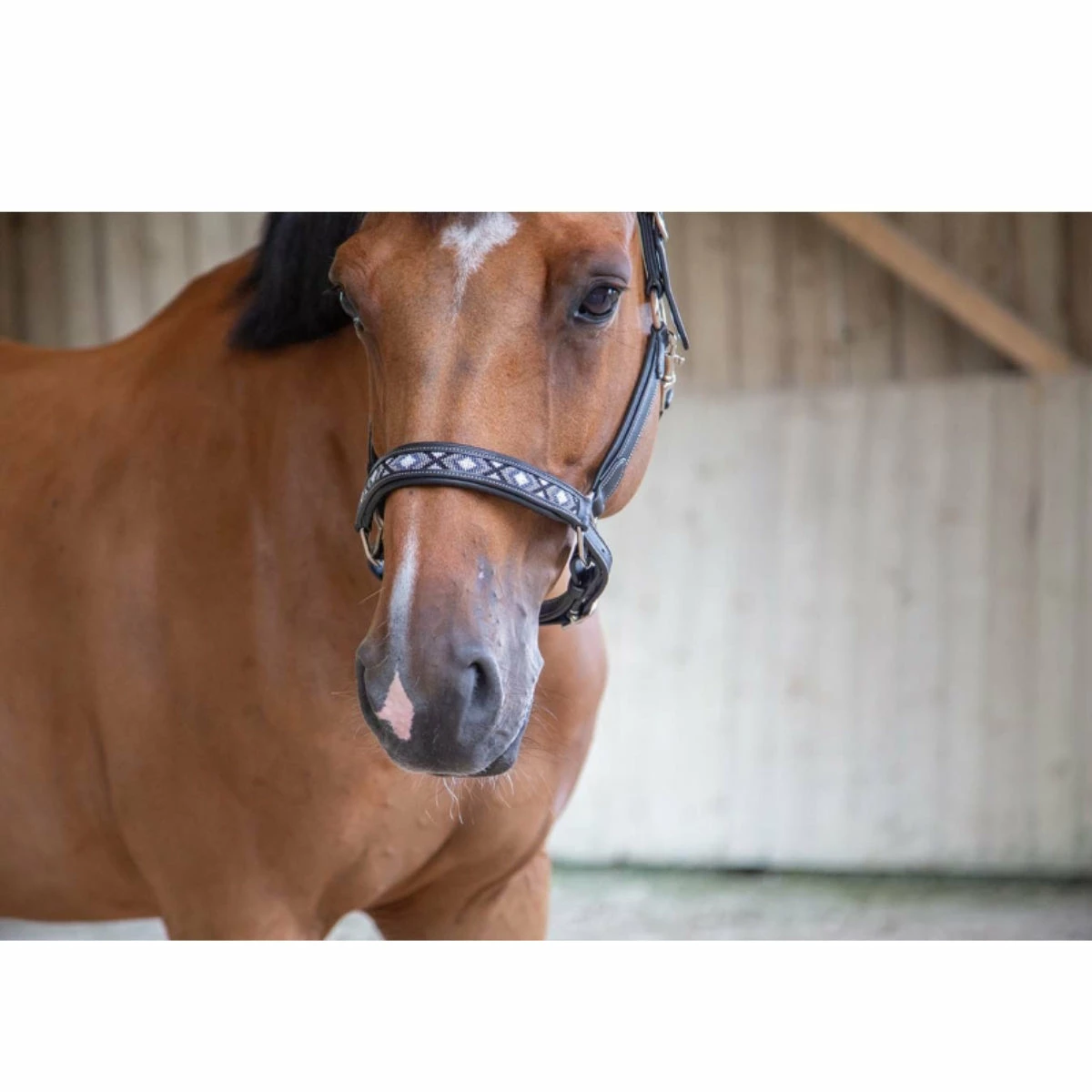 It comes with stainless steel buckles. To easily put it on your horse, it can be opened under the cheeks thanks to a hook. It is perfectly adjustable thanks to a buckle under the noseband, and double adjustment on the head.Â