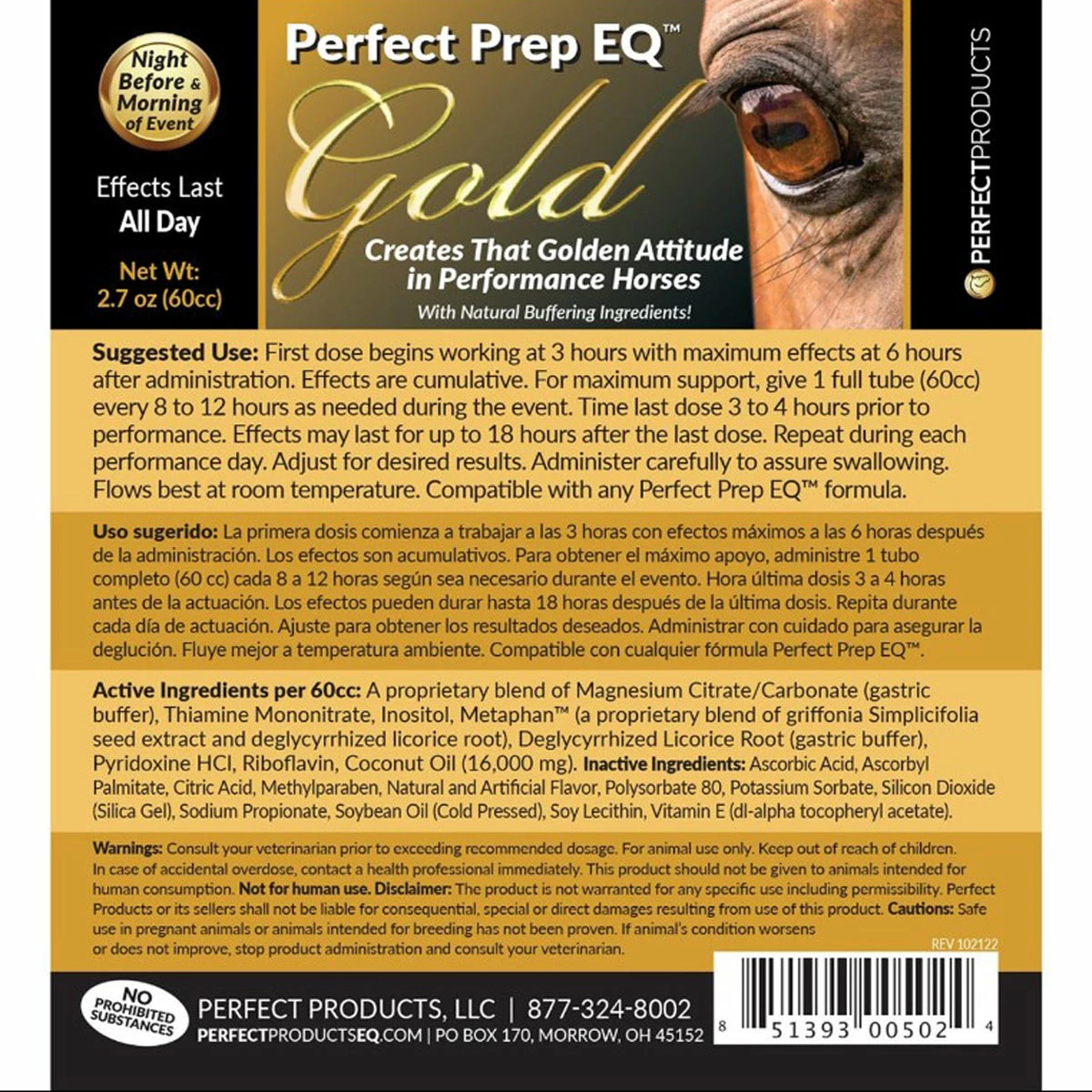 Perfect Prep EQโข Gold is a long-acting focus and attitude formula for horses requiring support for extended periods.