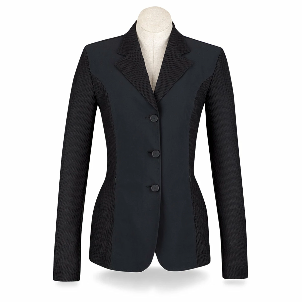 Stay cool and look polished with the RJ Classics Harmony Ladies’ Mesh Show Coat. We love the Harmony show coat because it offers a breezy solution to hot weather horse shows while maintaining the tradition of the sport. RJ puts the mesh in all the right places to circulate air through the coat, while also maintaining a structured placket across the front and back of the coat. This structured placket gives the fit, and silhouette of a traditional show coat with all the benefits of a full mesh show coat.ย