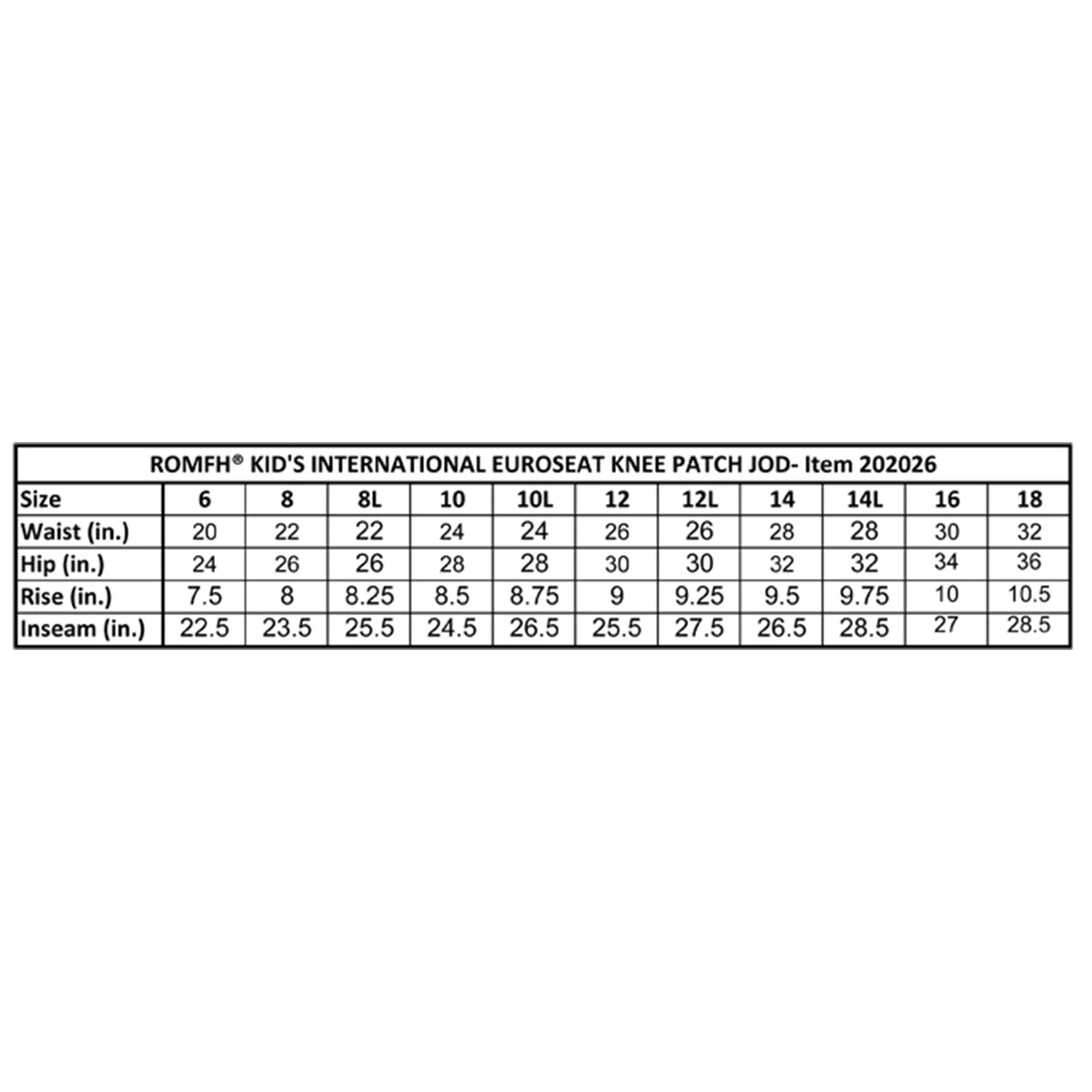 The Romfh® Child’s International Euro Seat Knee Patch Jodhpur is made with a super light and stretchy fabric that wraps you in a cool breeze of comfort. Machine washable.