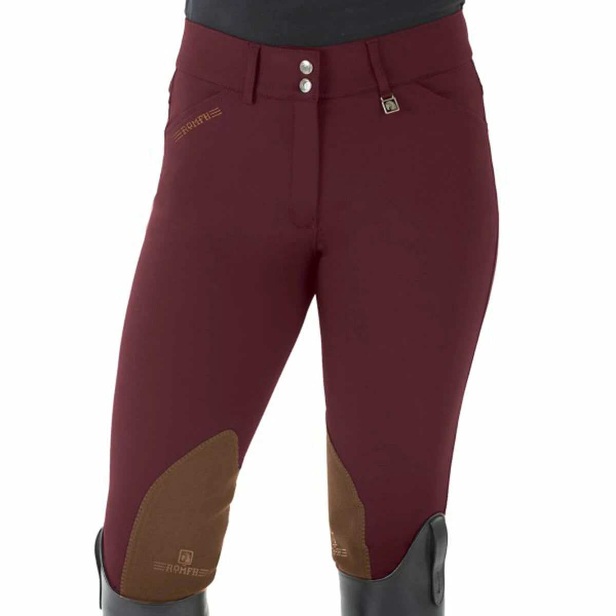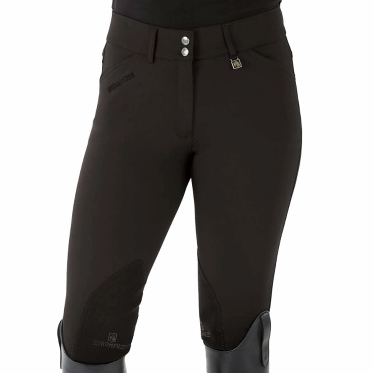 The Romfh Sarafina Euro Seat KneePatch Breech is a breech ‘fit’ for royalty. The fit of this comfy mid-rise breech is outstanding; with a flattering contoured waistband, strategically placed back yoke, and wide non-binding fit allows your waist, hip, and other assets to look their best! This breech features Softtouchโข micro-PU fabric for the softest, most comfortable technical breech. Machine wash.