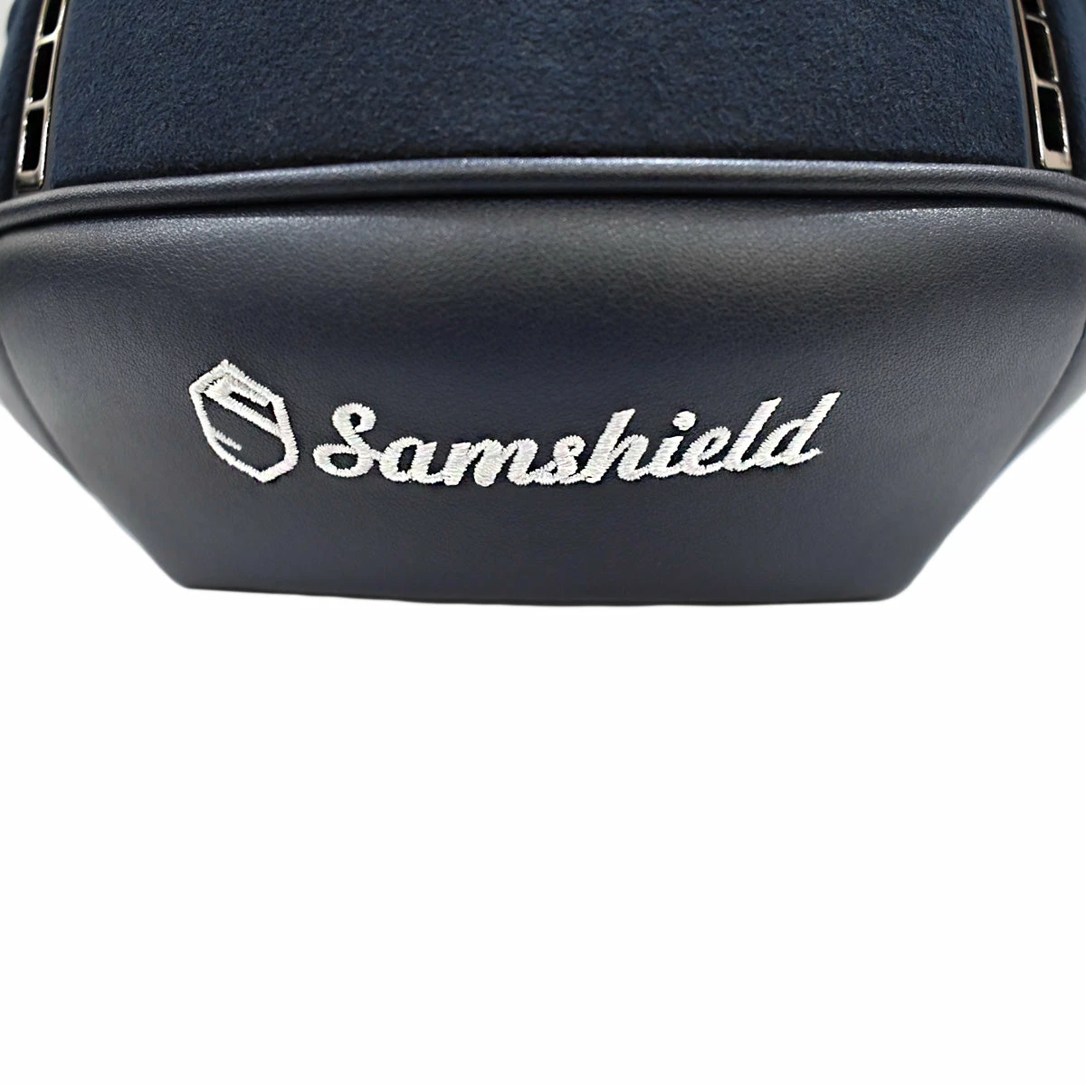 We love this Samshield Custom Miss Shield Blue Alcantara Helmet for the supple suede, coupled with chrome detailing.