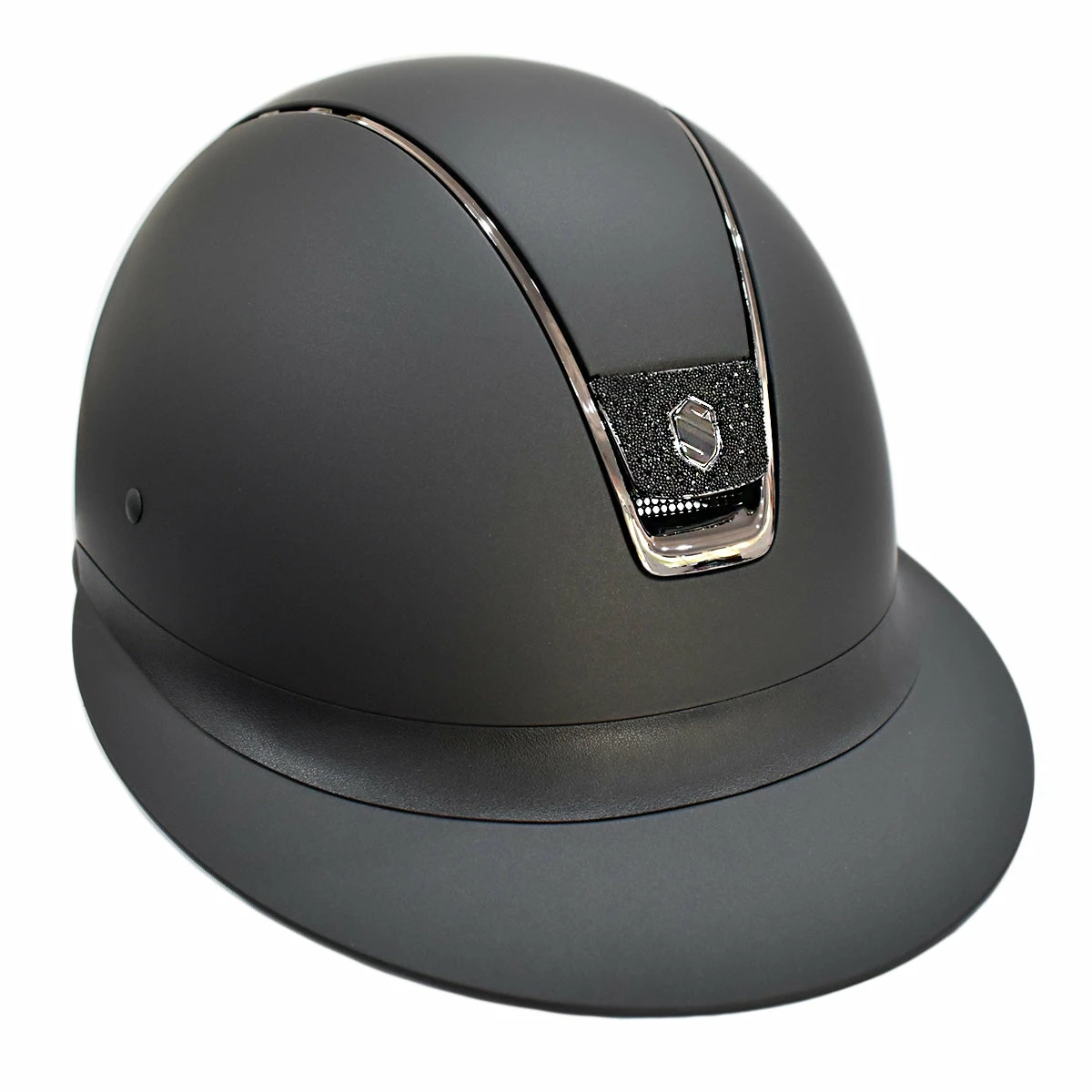 We love this Samshield Custom Miss Shield Matte Black Chrome Black Blazon Crystal Helmet for the bold Blazon Crystals & black matte chrome detailing.