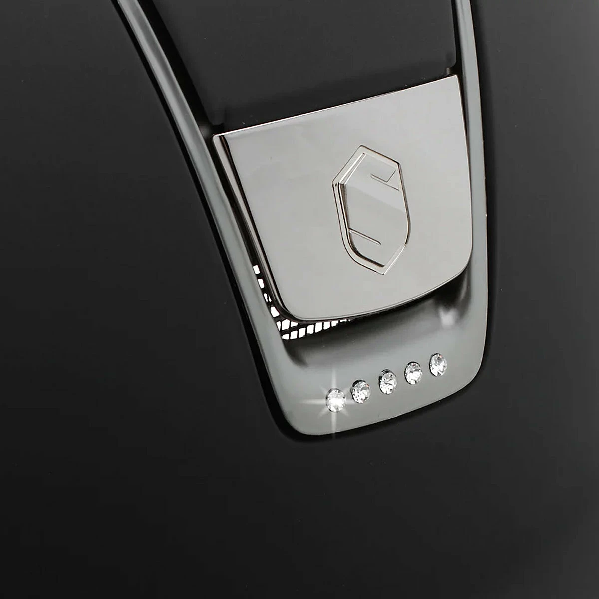 - Features 5 Swarovski crystals on the blazon