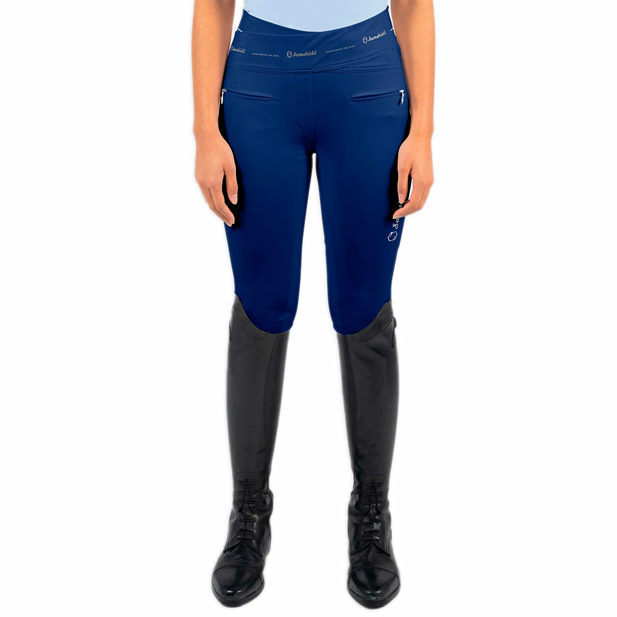 The Alpha breeches are extremely pleasant and comfortable to wear due to their elasticated waistband without buttons or closures and their ultra-stretchy material. They adjust perfectly to the silhouette and highlight it, owing to their reinforced and elasticated fabric and the gusset on the back. Alpha breeches provide special stability with the knee grip. Their anti-UV treatment provides protection against ultraviolet rays. The front pockets close with zips. The Alpha breeches perfectly combine comfort and technicality.ย