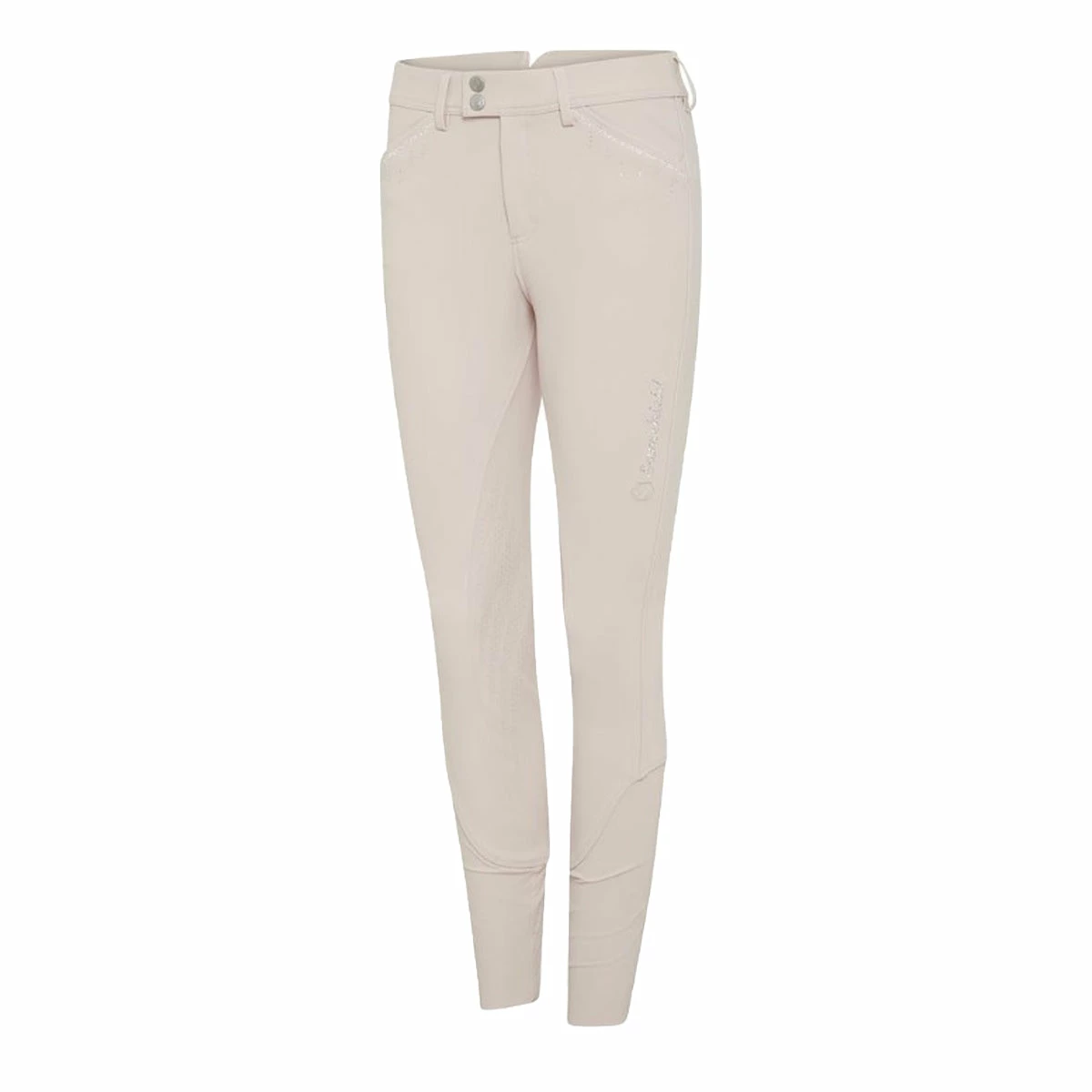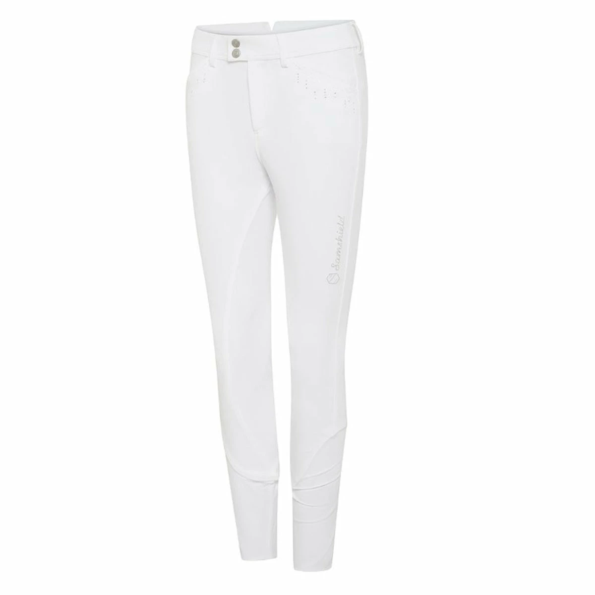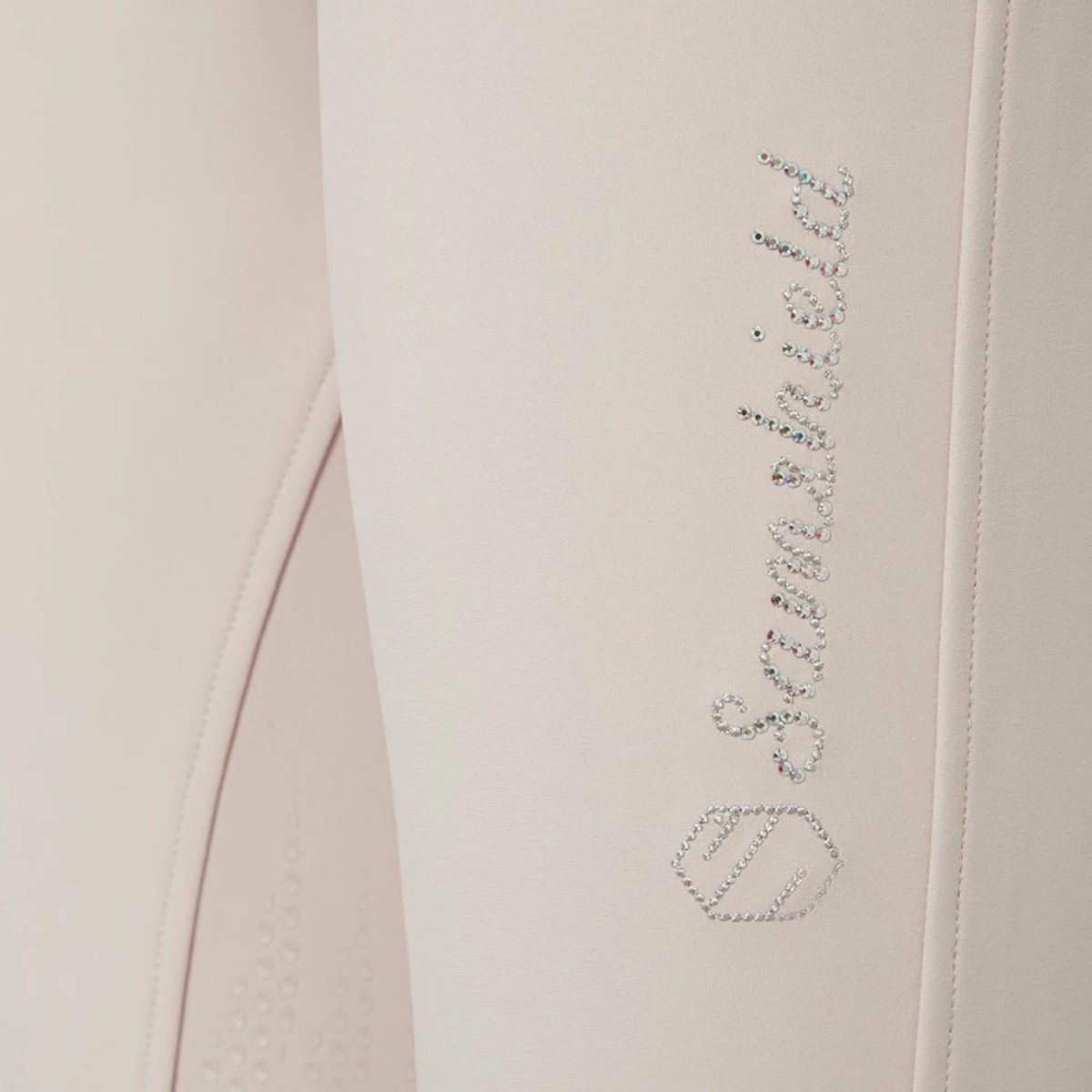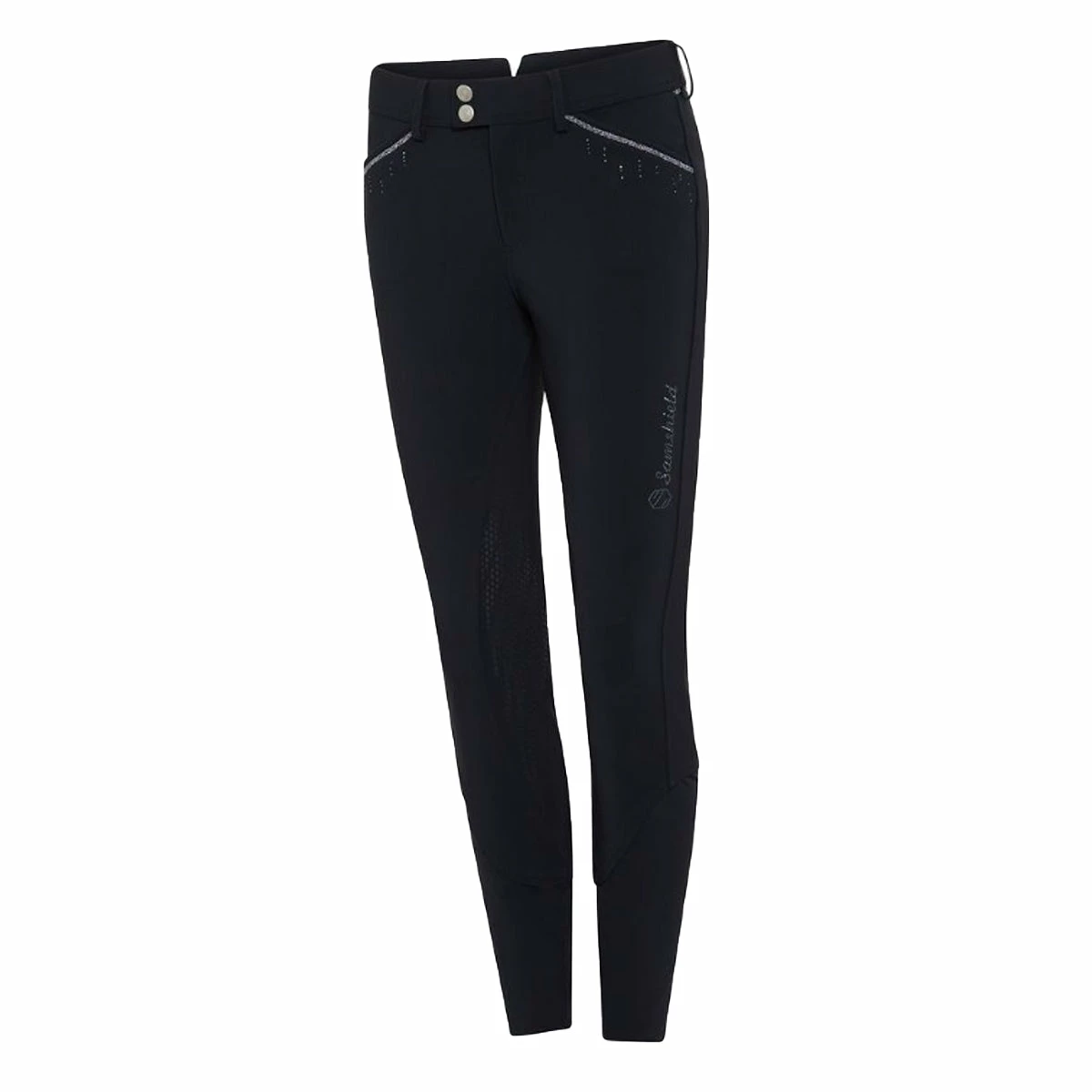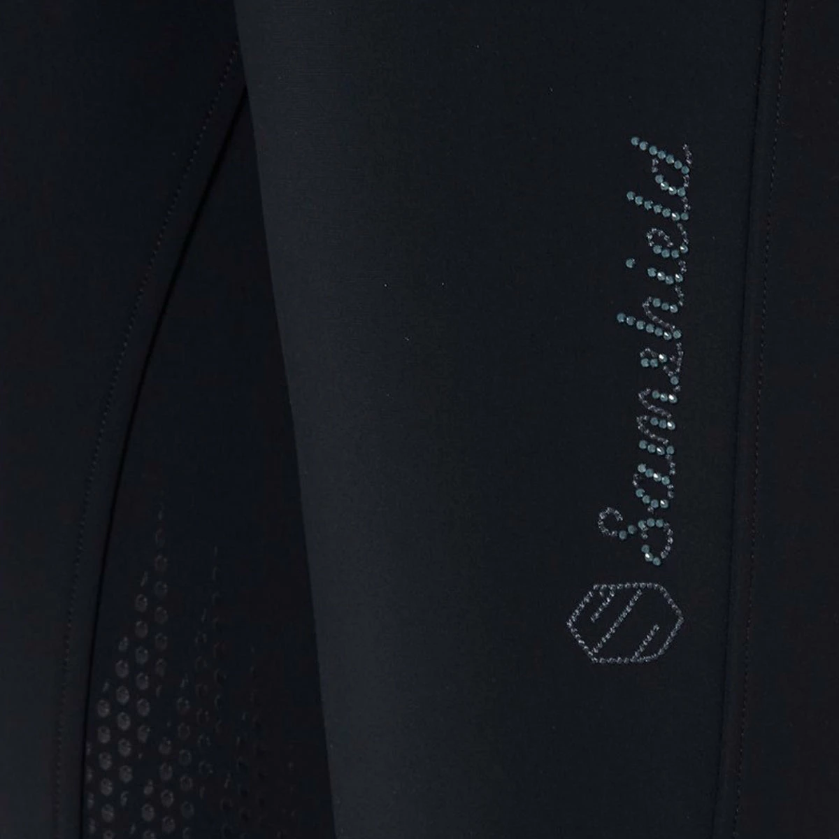 The Celeste Breeches feature a high waist with flattering V design and full seam seat on the reverse and Swarovski Crystal Fabric detailing on the pockets and reverse. The four way stretch fabric allows for optimum freedom of movement, whilst the six layer grip gives excellent adherence to the saddle. These breeches are finished with an embroidery and crystal Samshield logo on the thigh. The fabric is UV protected, maintaining color quality but also protecting the rider’s skin and is EPD certified, making it an environmentally friendly choice. Easy care, machine washable at 30’C