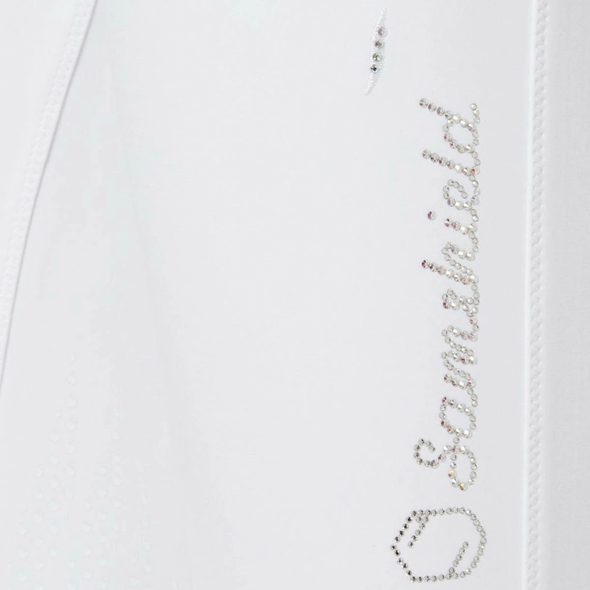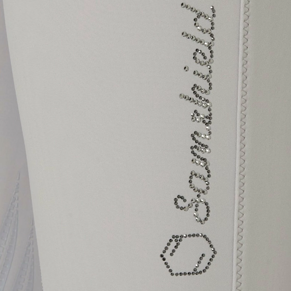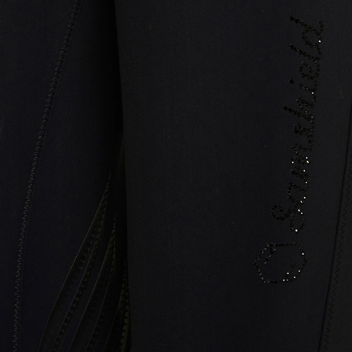 Body temperature regulating technology wicks moisture away and keeps the skin free from perspiration. These breeches a statement piece with their stunning detailing โ Swarovskiยฎ Samshield logo on the leg and Swarovskiยฎ Crystal Fabric on the reverse. They are also EPD Certified, making them environmentally friendly. Additional features include a hidden phone pocket, compressive calf area for increased blood flow and muscle support and an inner elastic panel on the waistband to keep your shirt in place.
