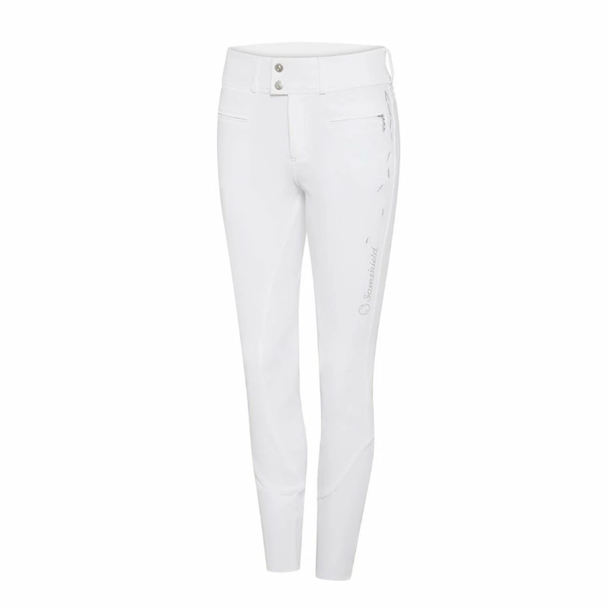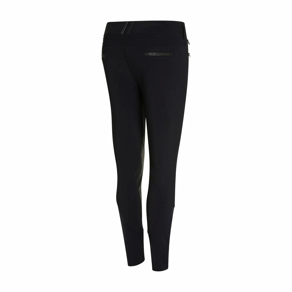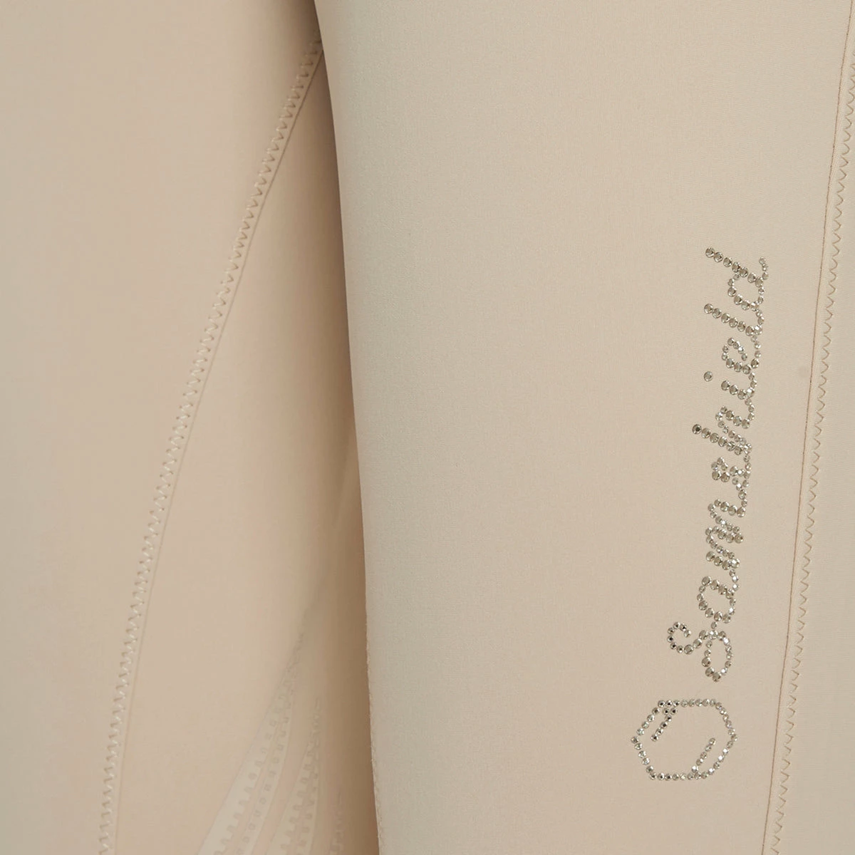 Body temperature regulating technology wicks moisture away and keeps the skin free from perspiration. These breeches a statement piece with their stunning detailing โ Swarovskiยฎ Samshield logo on the leg and Swarovskiยฎ Crystal Fabric on the reverse. They are also EPD Certified, making them environmentally friendly. Additional features include a hidden phone pocket, compressive calf area for increased blood flow and muscle support and an inner elastic panel on the waistband to keep your shirt in place.