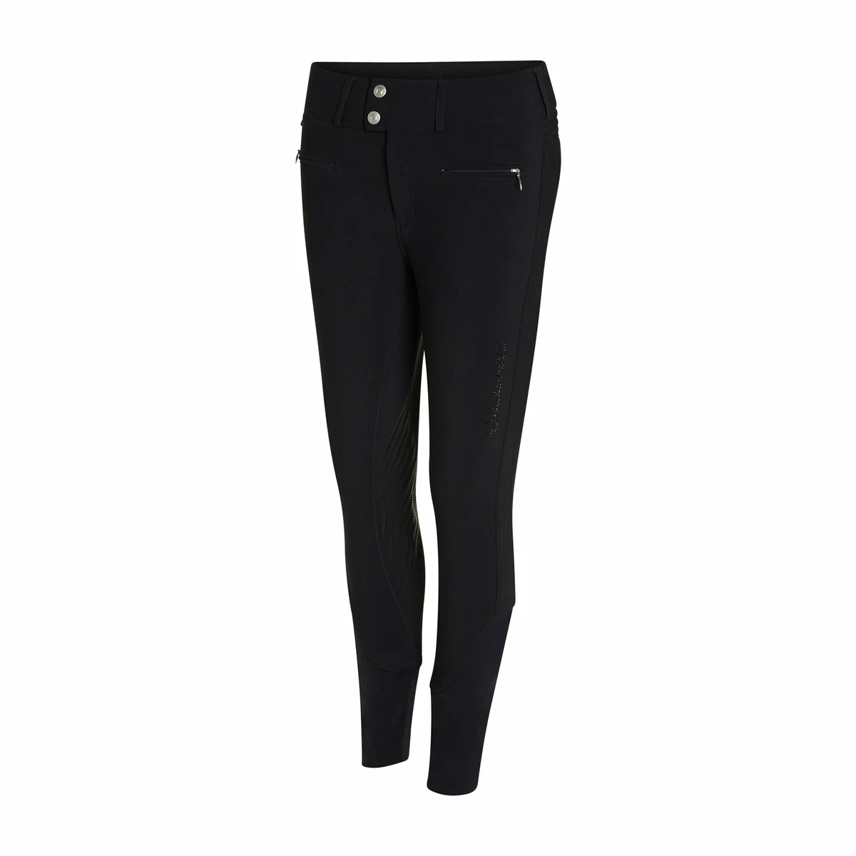 We love these Samshieldย Women’s Clara Knee Grip Breeches for their unique waist design and stylish crystal embleshments. These pants offer an amazing comfort and a body temperature regulating technology that were sure you’ll love just as much as we do.
