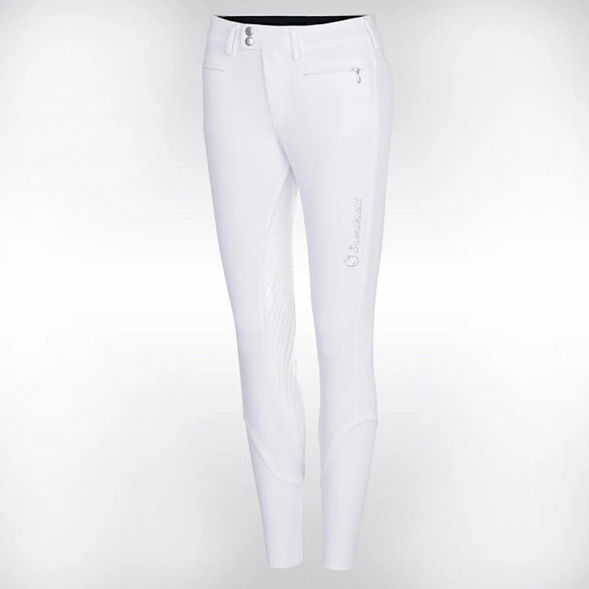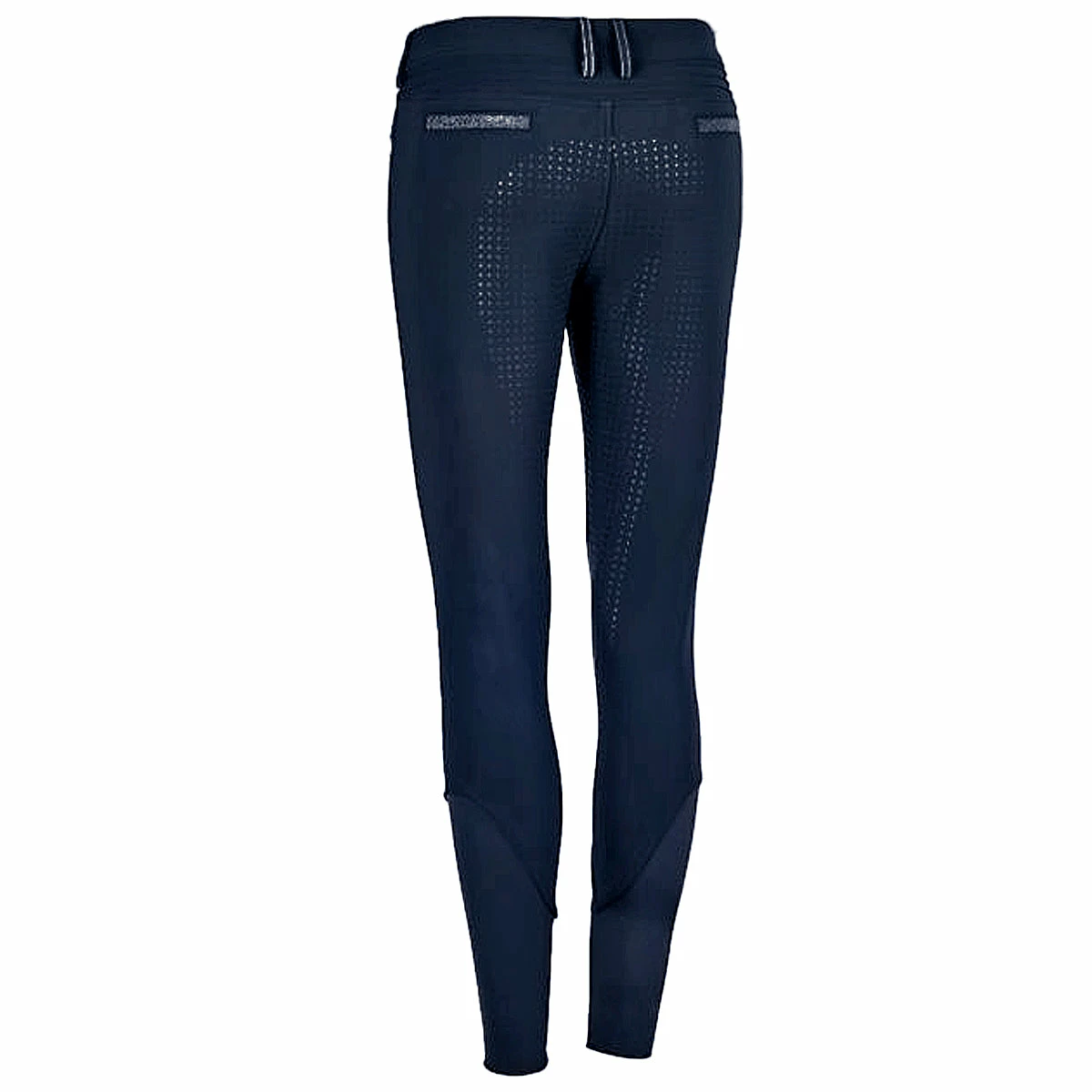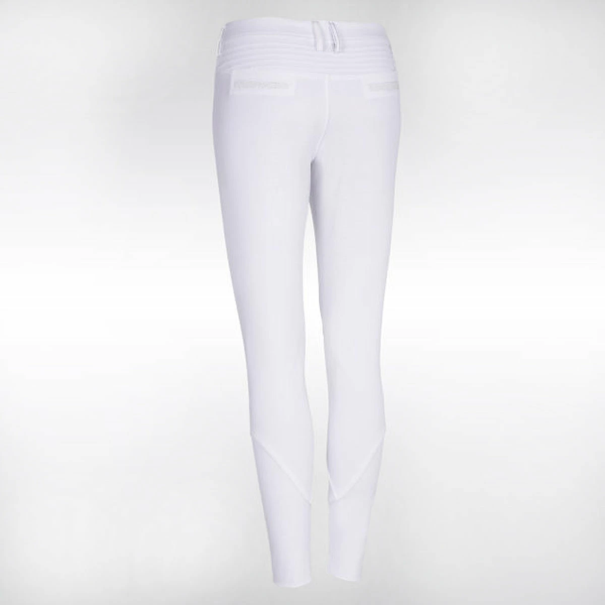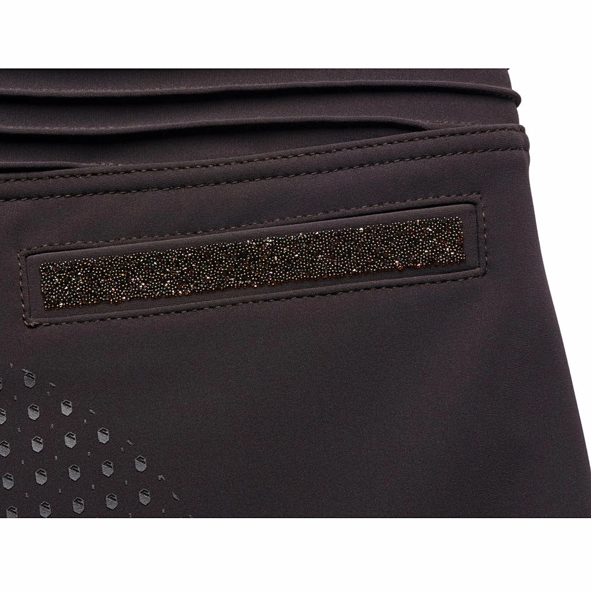 The Diane Embroidery breeches are fitted with an integral seat with grip guaranteeing exceptional adhesion in the saddle and along the leg. Made in an ultra-stretch, non-slip and resistant technical fabric, the Diane Embroidery breeches feel like your second skin, offering both great stability and incredible comfort. The fitted cut and the gusset on the back ensure a perfect fit. The compression fabric around the calves ensures that the trousers fit perfectly, and the inside of the belt, fitted with grip, prevents the shirt from riding up. The Diane Embroidery breeches are UV treated. Decorated with floral embroidery and Swarovski crystals on the thigh and back pockets, the Diane Embroidery breeches combine femininity, comfort, technology and sophistication.