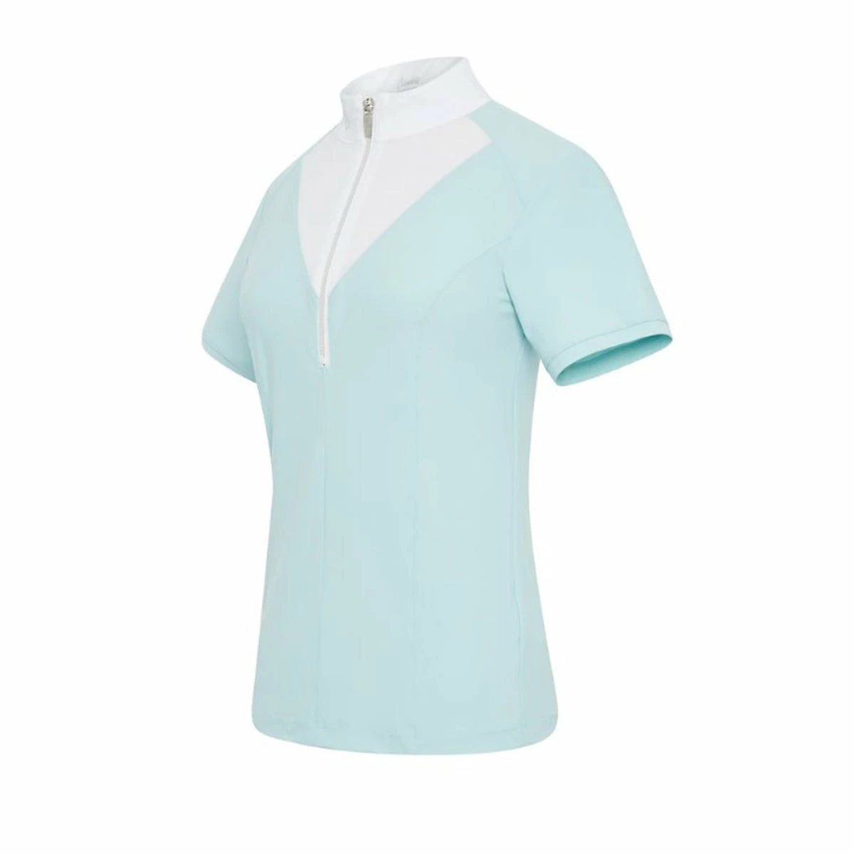 The Jordana Competition Short Sleeve Shirt features a stylish ‘V’ mesh pattern on the front and reverse, with a metal front zipper opening.ย The material is a highly stretchable and breathable technological fabric that wicks away sweat to keep the rider dry and comfortable.ย Finished with a Swarovski Samshield crest to the collar and a printed logo to the shoulder.ย Easy to maintain, machine washable at 30ยฐC and made with respect for the environment.