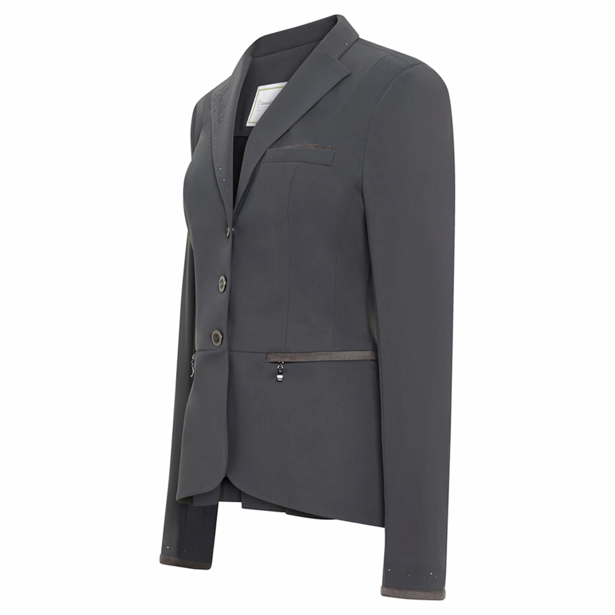 The Victorine Crystal Fabric competition jacket is designed to provide comfort and technical performance to riders. The tailored fit and asymmetrical tailoring (the front is cut shorter than the back) ensure a perfect fit, elegance, and comfort.