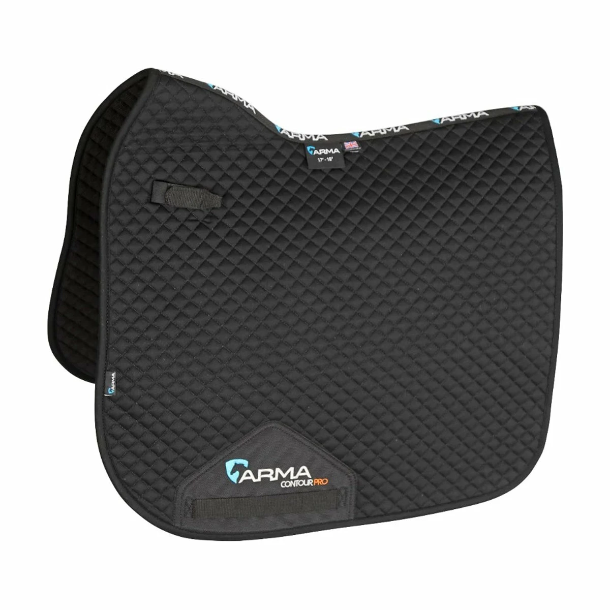Stand out with the ARMA cotton finish Dressage saddlecloth, smart enough for competing or for everyday use. Breathable stay-smart anti-pill 100% cotton outer. Ultra Dri-Zone lining instantly wicks sweat from the horse to reduce the risk of rubbing and increase comfort. Vibrant color range. Girth guides and elasticated D-ring straps for convenient security. Hardwearing girth guards. Contoured shape for good clearance.