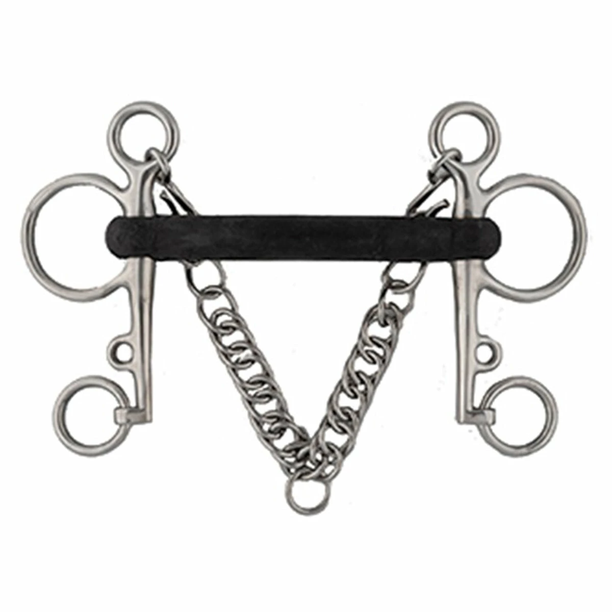 Pelham Bit with a rubber-covered Mullen mouth with a thickness of 21mm and stainless steel cheeks with curb chain.