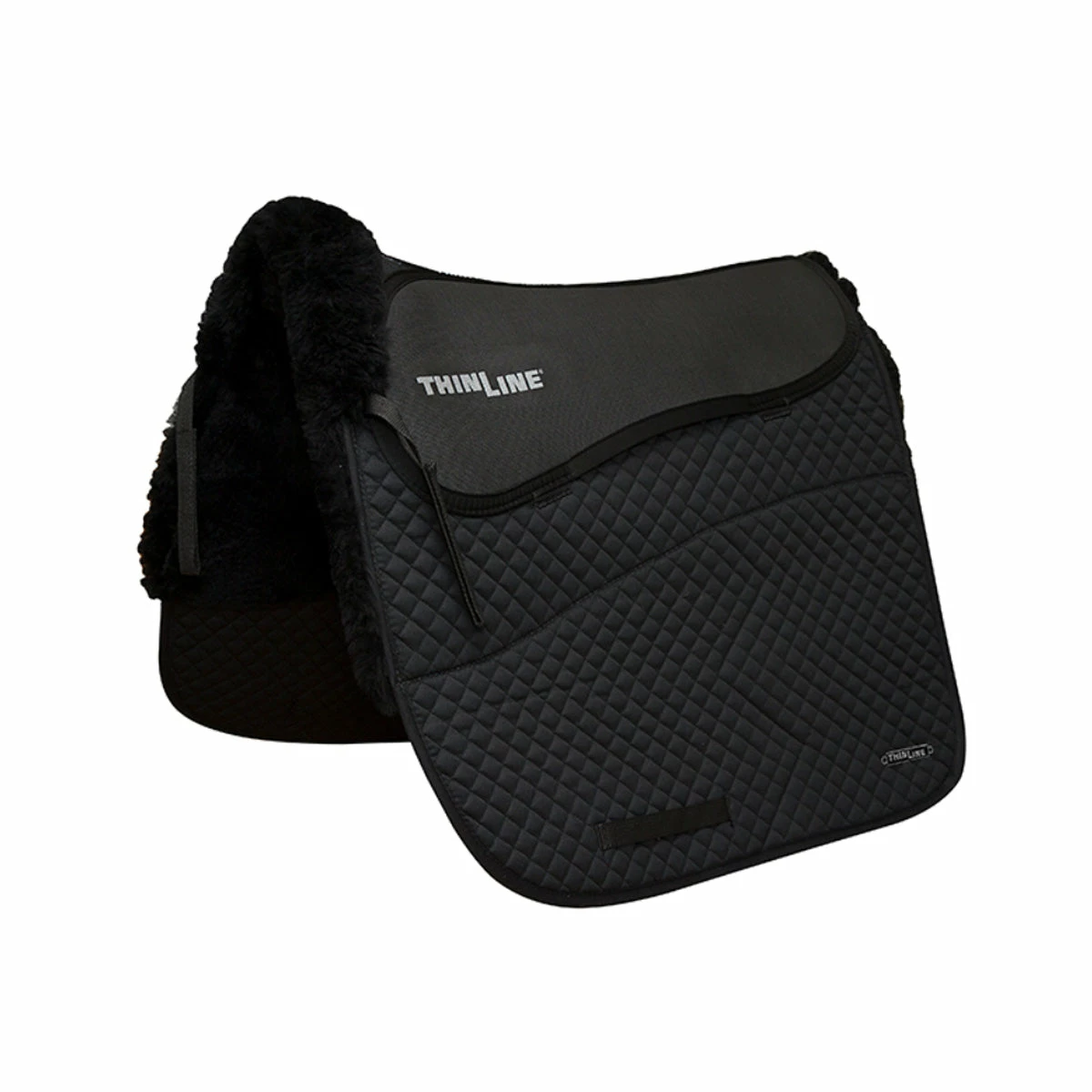 Pad components; ThinLine is sewn to a quilted cotton square saddle pad with luxurious woven wool sheepskin under the panels and at the front roll creates the ultimate dressage saddle pad.ย The manner in which this product absorbs motion encourages horses to lift their backs, developing strength and top-line. Endorsed by Veterinarians, as well as Spinal Surgeons for Riders. It is also the top pick for Master Saddlers around the world.